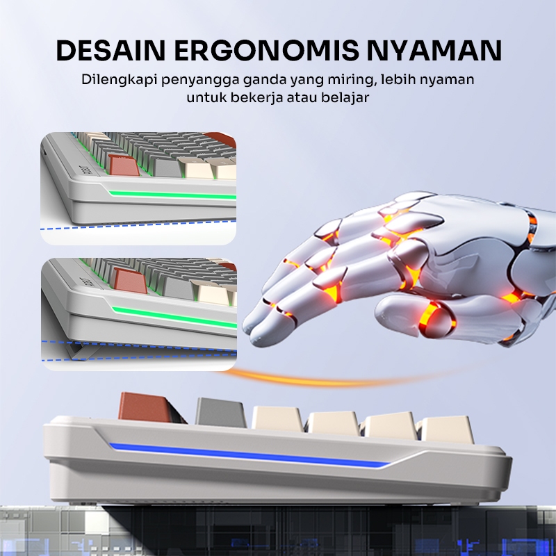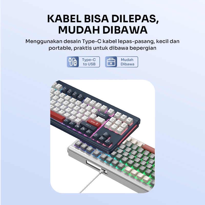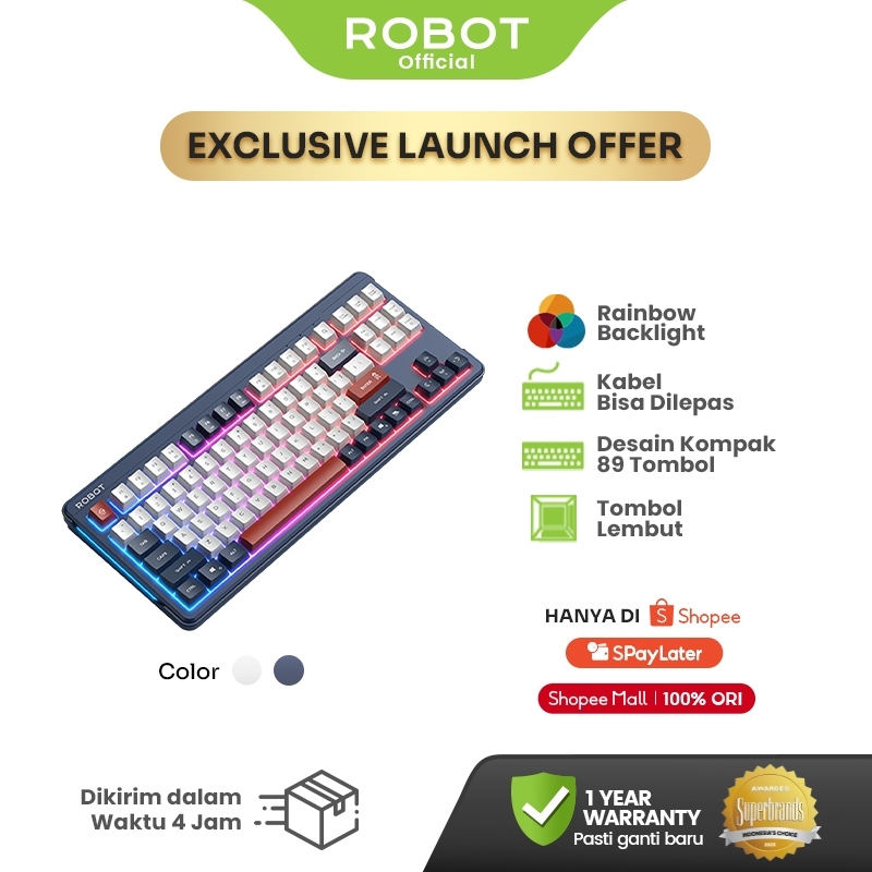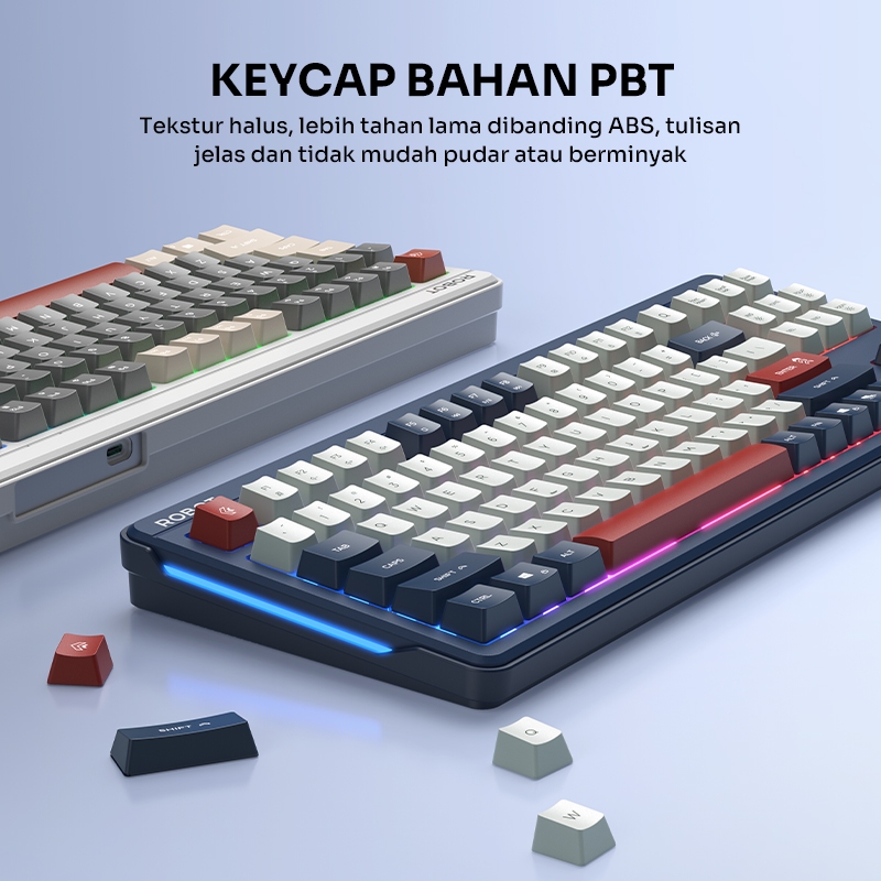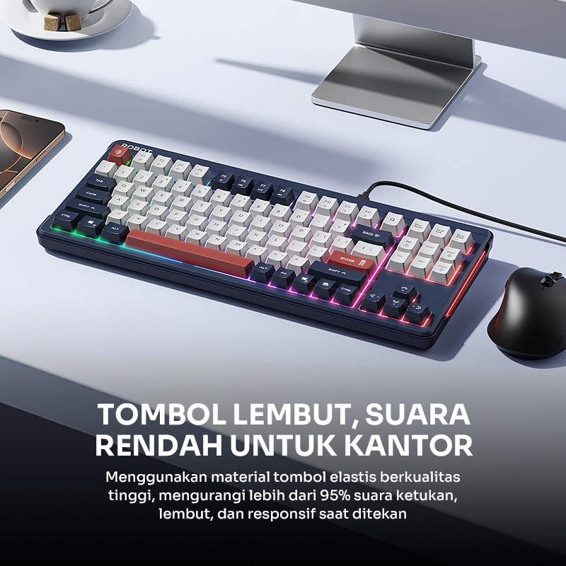 [SPECIAL LAUNCH] ROBOT Wired Keyboard Kabel Rainbow Backlight Type-C 89 Tombol Kompak Lembut Senyap Ergonomic Design Keyboard RGB RK50 Original - Garansi 1 Tahun