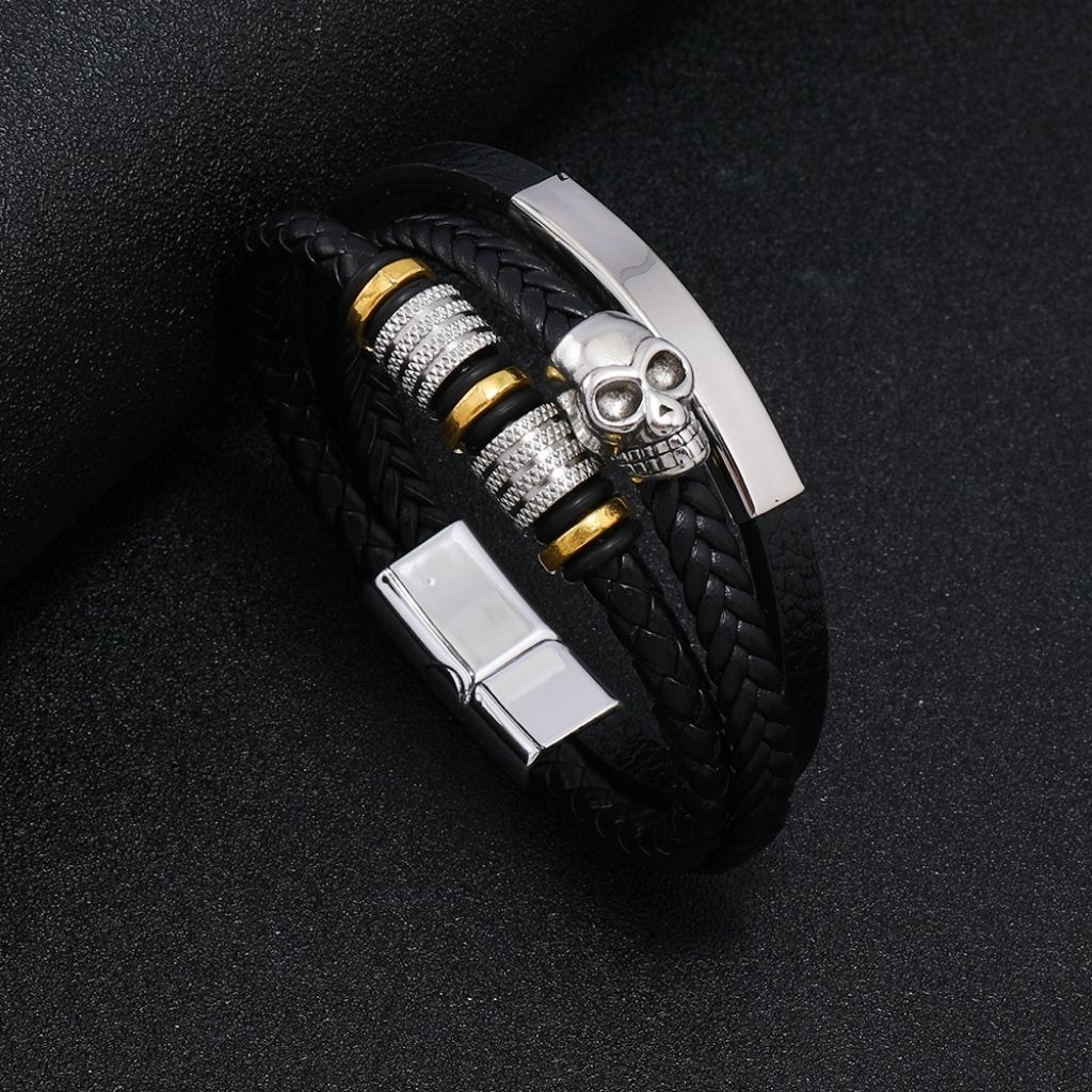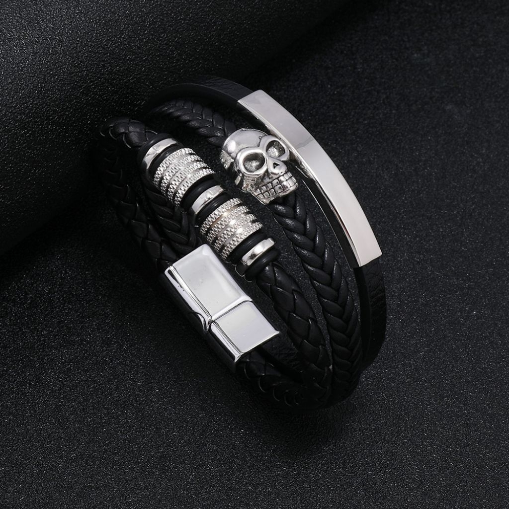 Gelang Pria Tengkorak Multi Layer High Quality Leather Premium Braided Skull Bracelet Gelang Kulit Asli