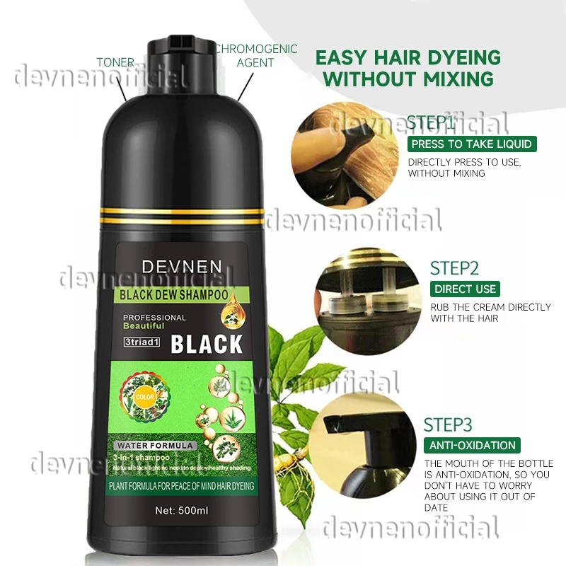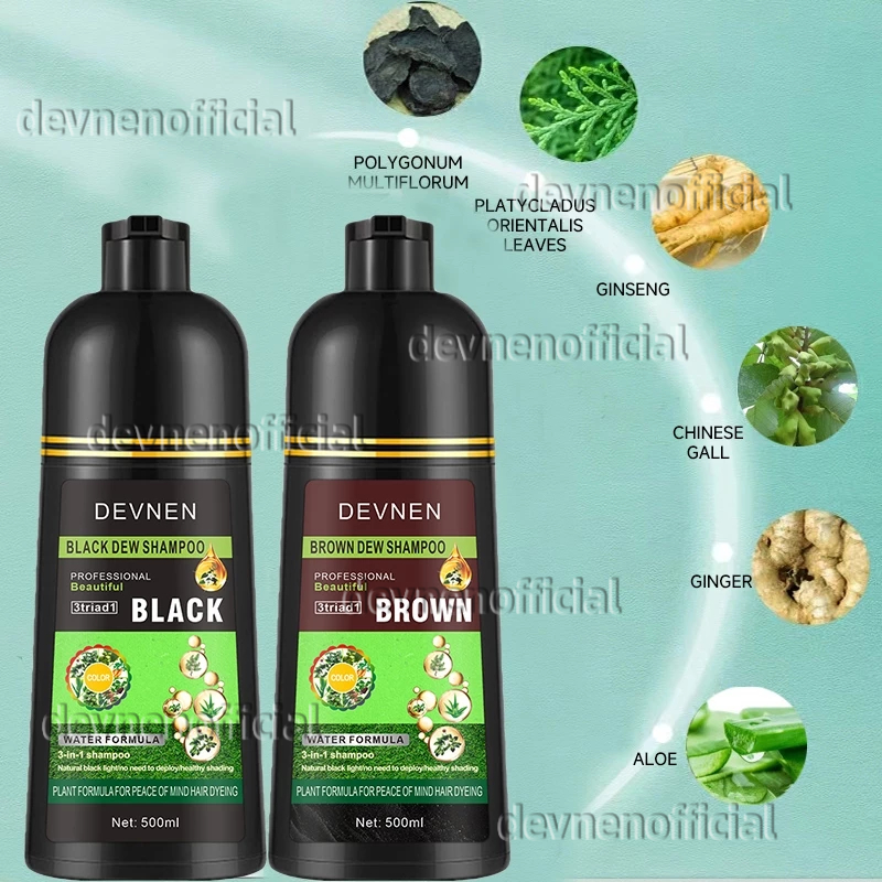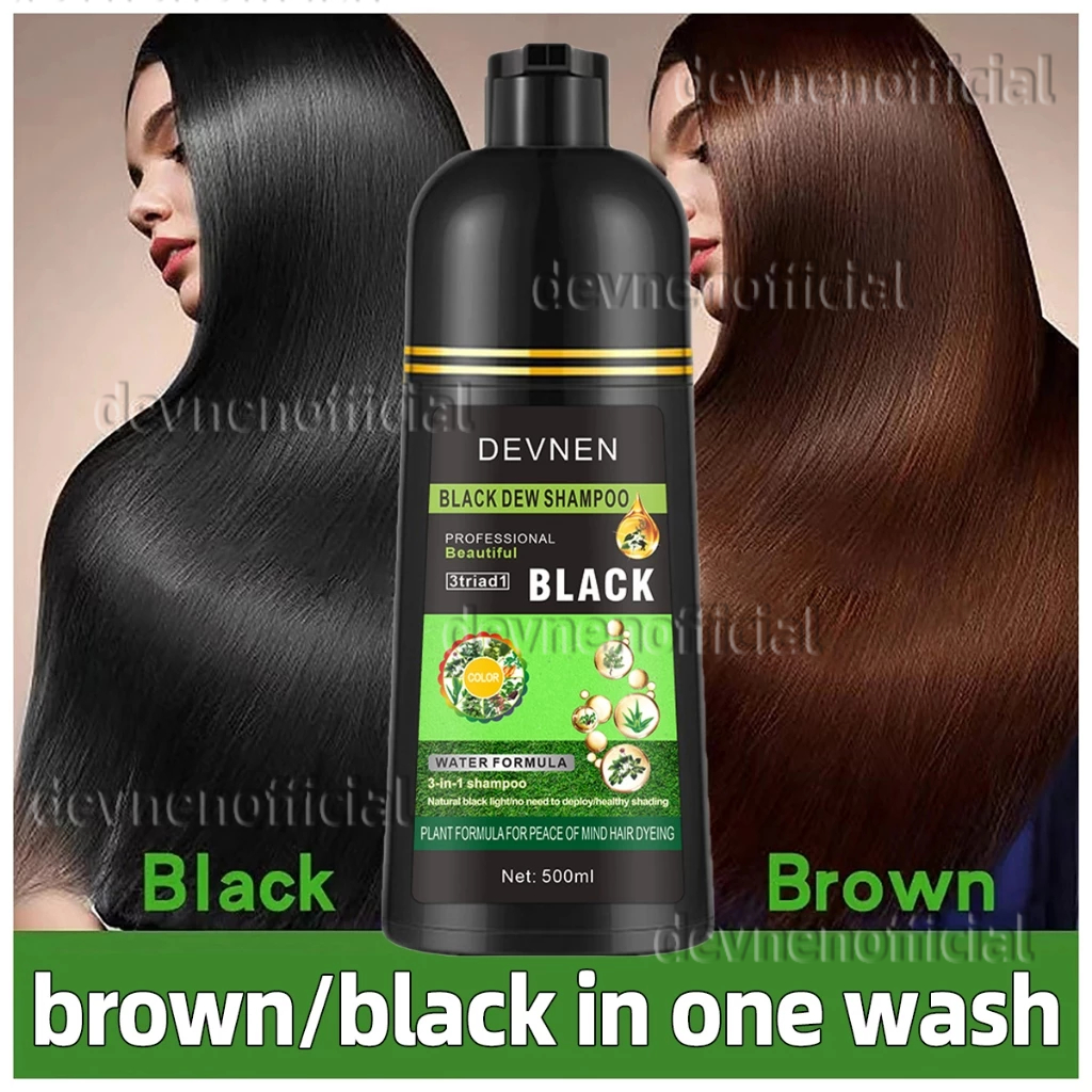 Shampo Penghitam Rambut Uban 500ml Black/Brown Instant Coloring Hair in 5 Minutes Hair Dye Shampoo Cat Rambut Tutup Uban Hair Color Shampoo Pewarna Rambut Hitam Untuk Pria Dan Wanita Herbal