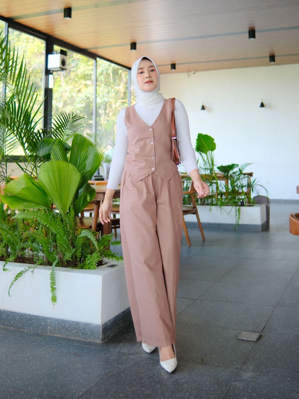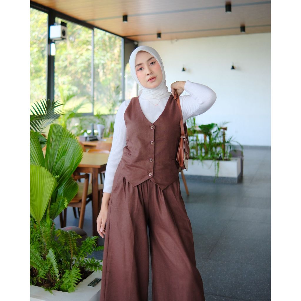Arumi Vest One Set Celana Wanita Kekinian | Setelan Minimalis Elegan Look Classy Korean Style