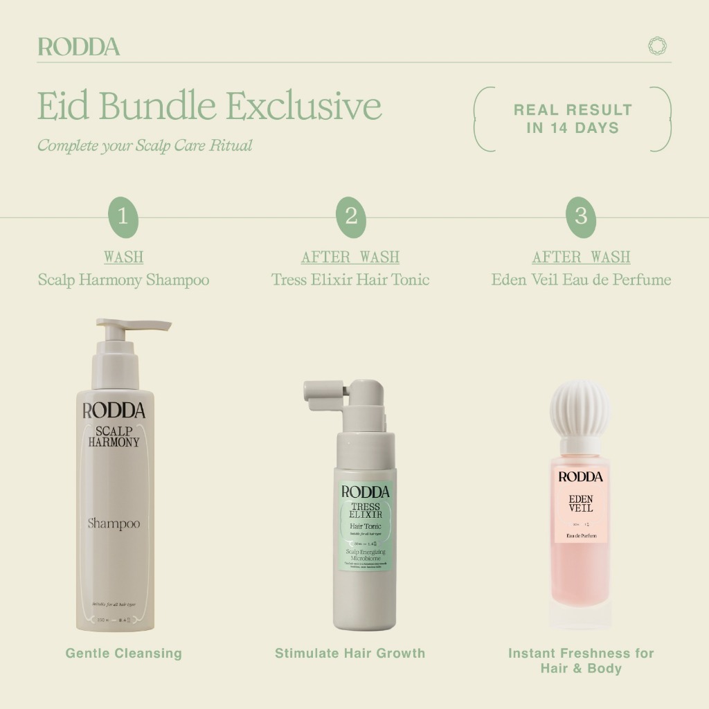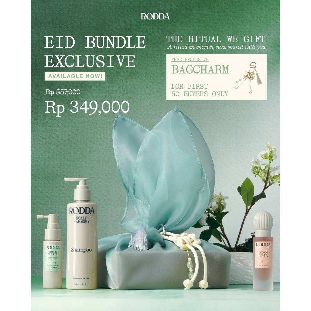 RODDA EXCLUSIVE EID BUNDLE (Shampoo 250ml, Hair Tonic 50ml, Eden Veil 30ml - Hampers Gift Set Ramadan | Gift Box | Rangkaian Perawatan Rambut dan Kulit Kepala | Hair Care & Scalp Care | NON SLS, PARABEN, SILIKON