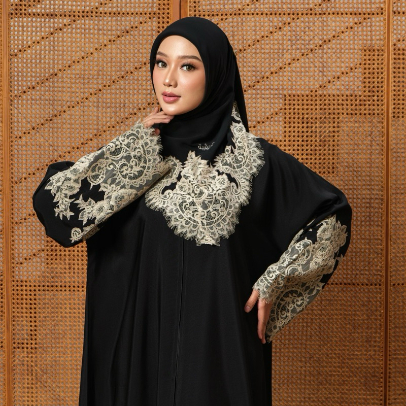 SHARQIAA Lace Abaya - Include Hijab Square