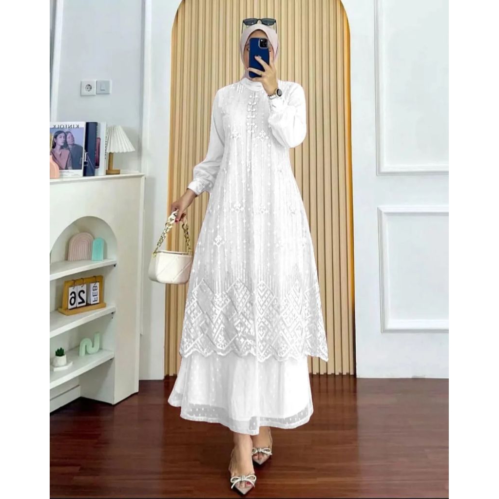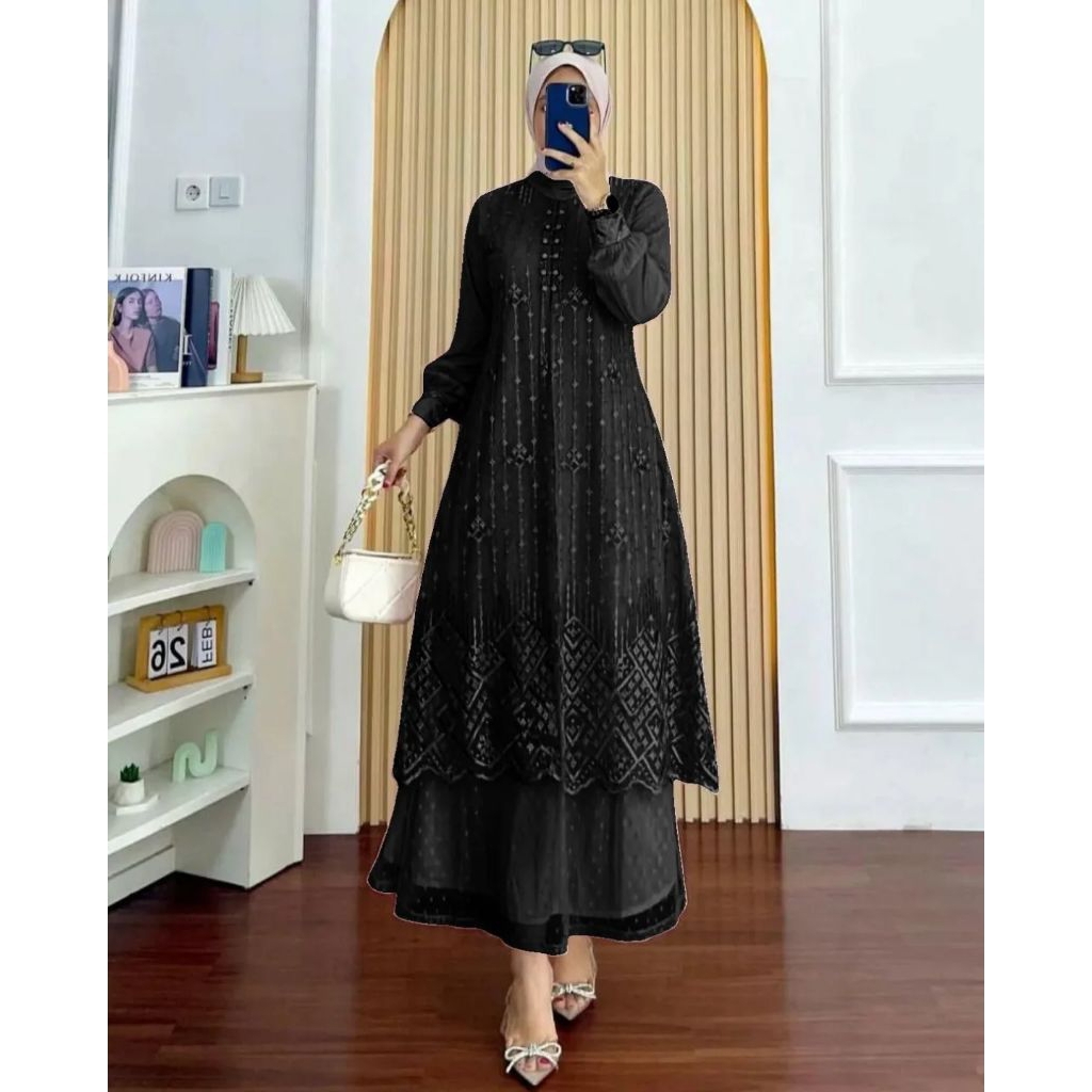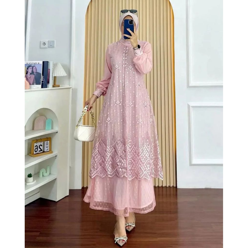 COD Amora Dress Velvet Mix Borkat Tille Gamis Pesta Wanita Simple Mewah Elegan Terbaru 2026