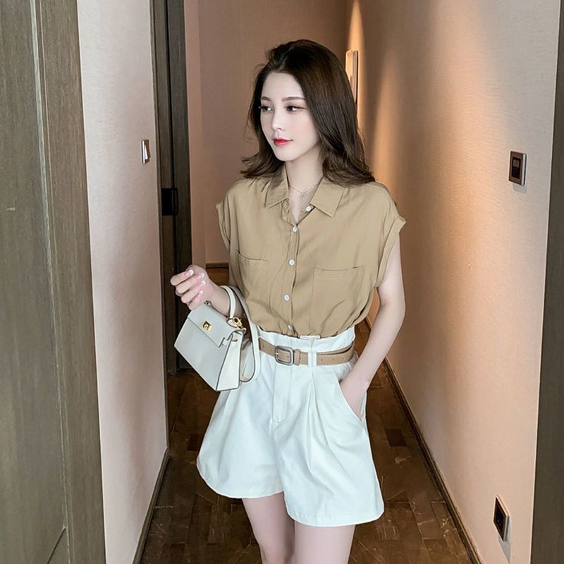 66TT Dress Darling DWJJPFS001 Setelan Musim Panas Untuk Wanita, Gaya Baru, Ukuran Plus Dan Gadis Gemuk, Set Dua Potong Dengan Kemeja Putih Bergaya, Celana Lebar
