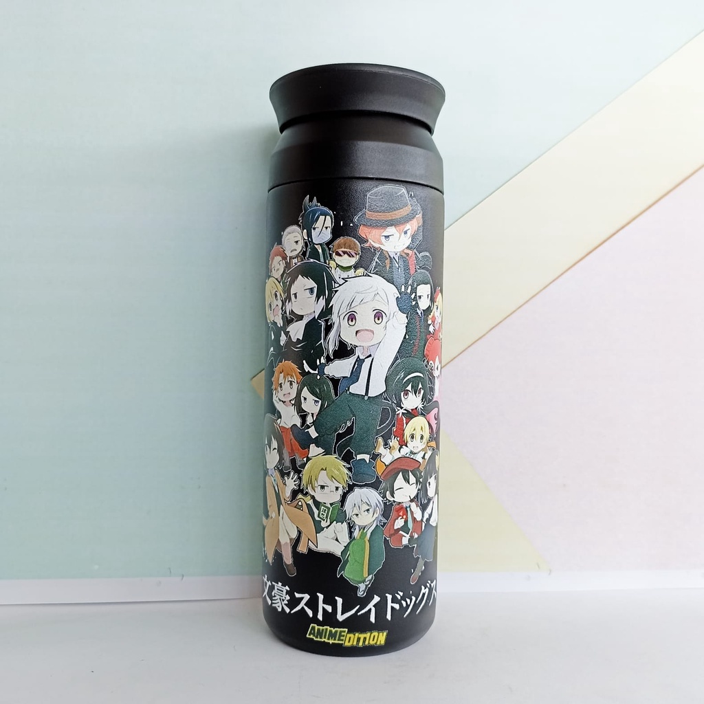 Termos Tumbler Botol Minum Anime Jujutsu Kaisen Bungou Stray Dogs Attack on Titan Spy X Family Full Print Hitam Putih