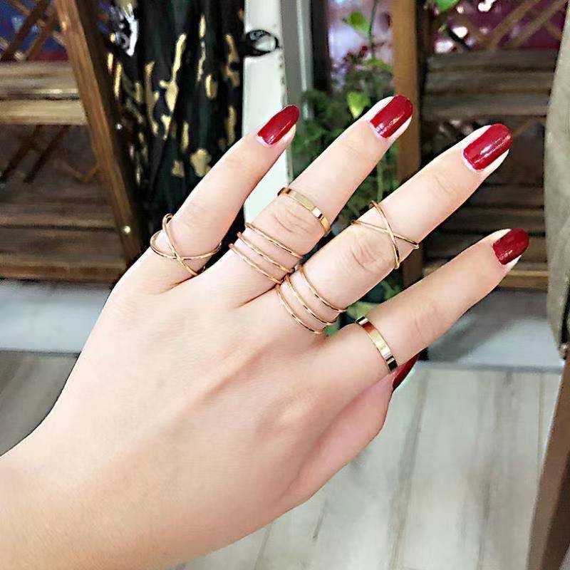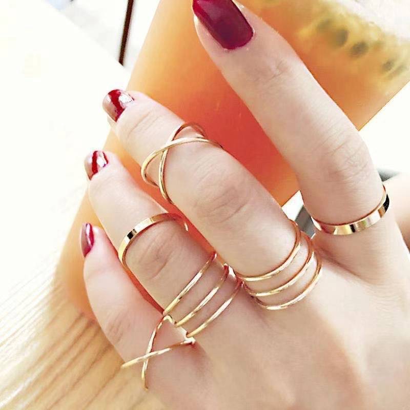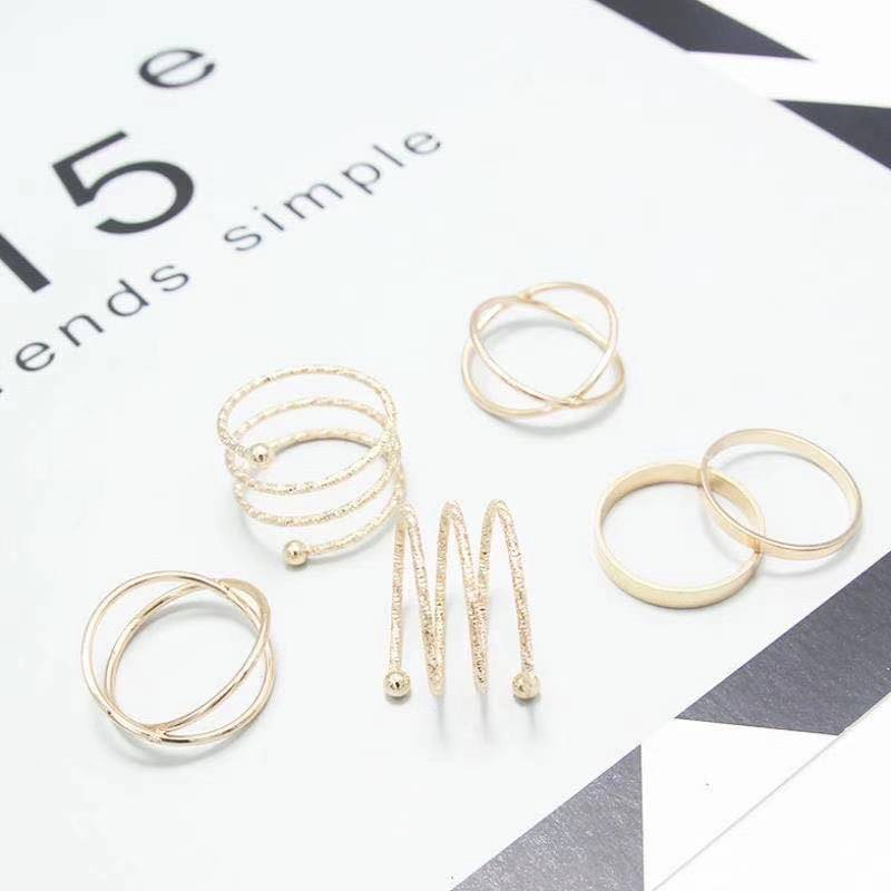 6Pcs / Set Cincin Aneka Bentuk Warna Antik Gaya Vintage Untuk Wanita