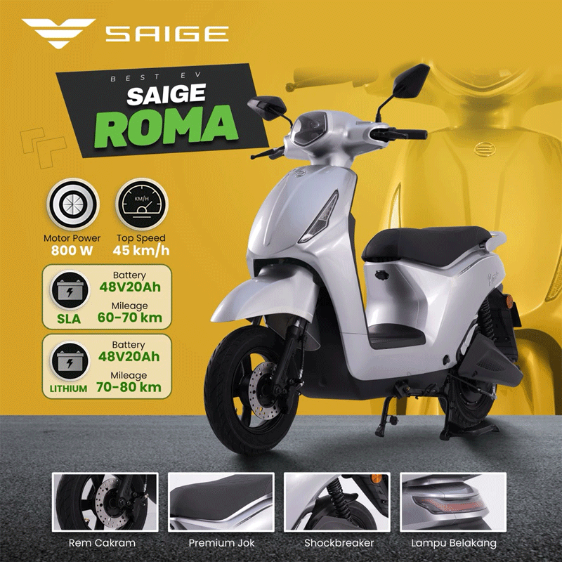 Sepeda Listrik SaiGe ROMA e bike Terbaru 2026 Lithium 800W Anti Air Sepedah Untuk Dewasa Garansi