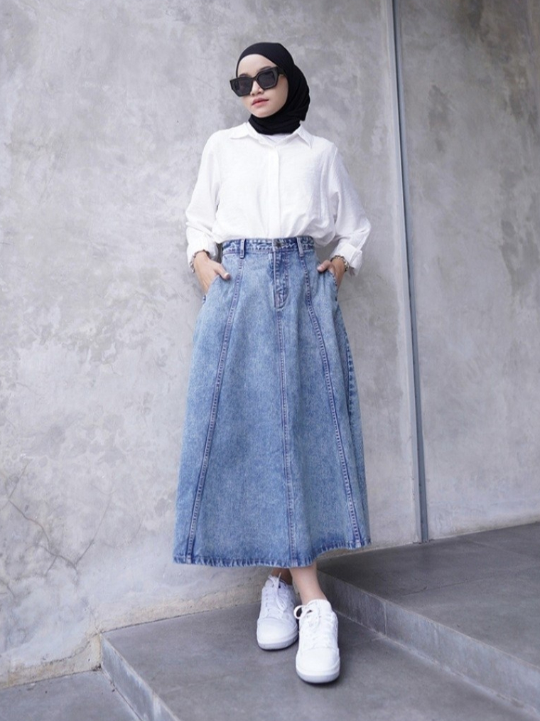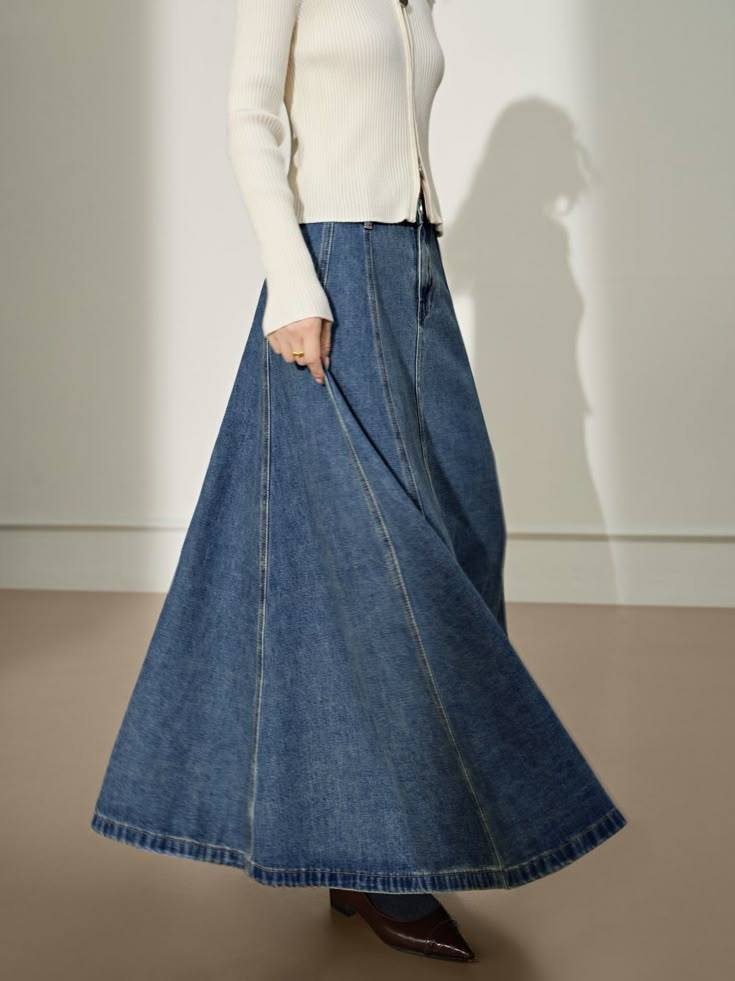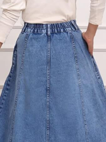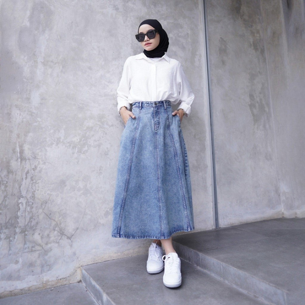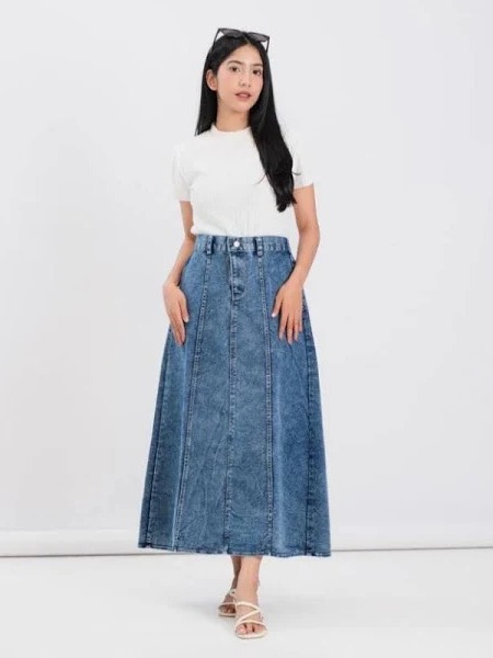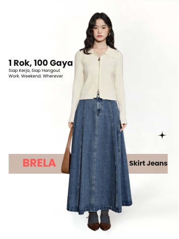 Brela skirt Jeans Mayung Premium Wanita A- Line Panjang Model Payung Pinggang Karet