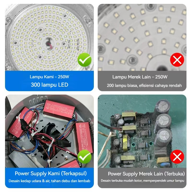 Lampu Highbay LED 100W 200W 300W Harga Terjangkau - Cahaya Terang & Efisien, Cocok untuk Gudang, Garasi, dan Area Komersial, Mudah Dipasang