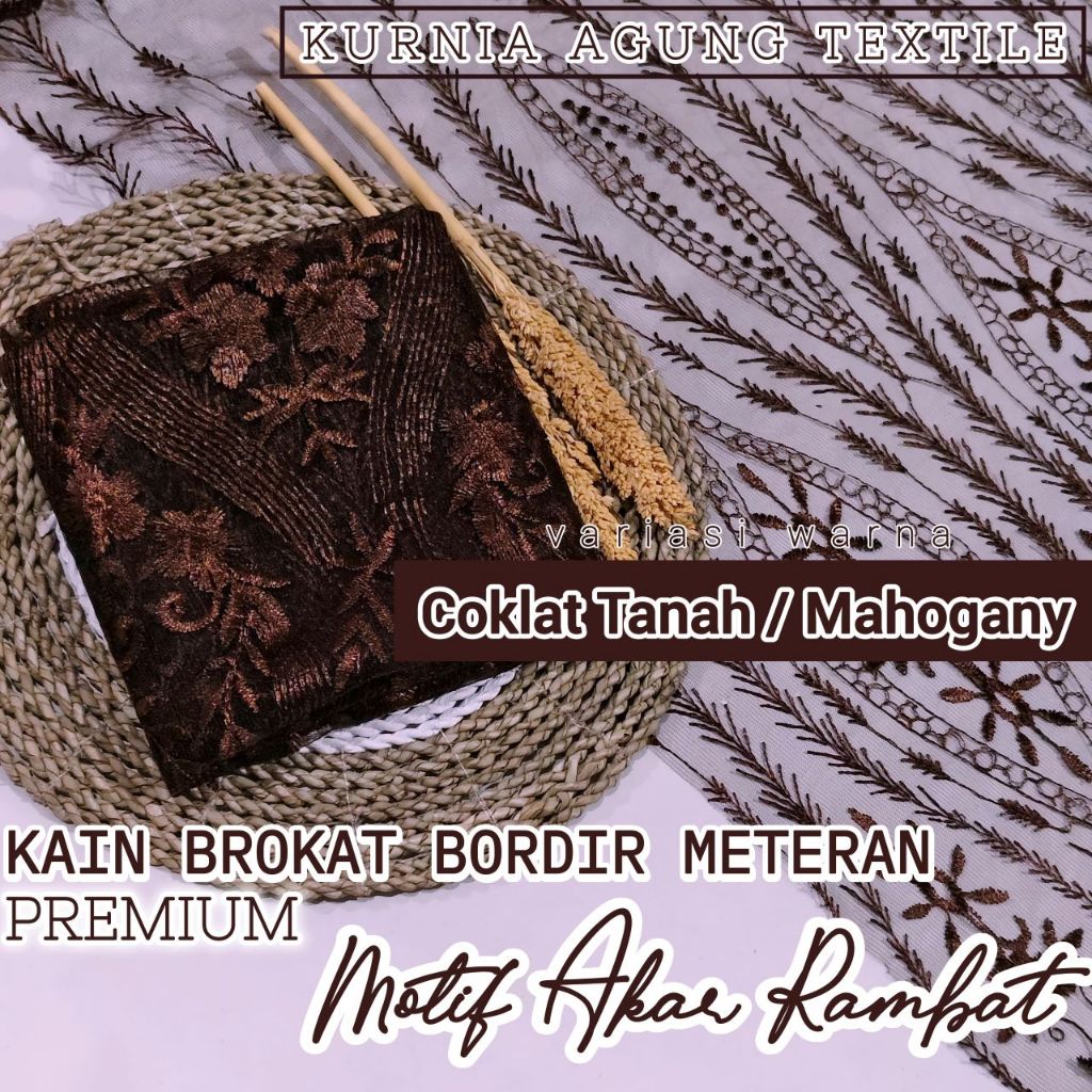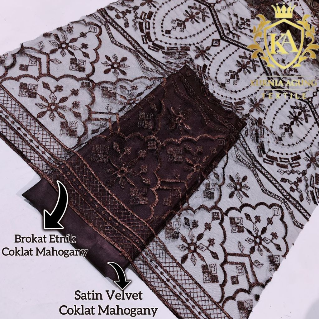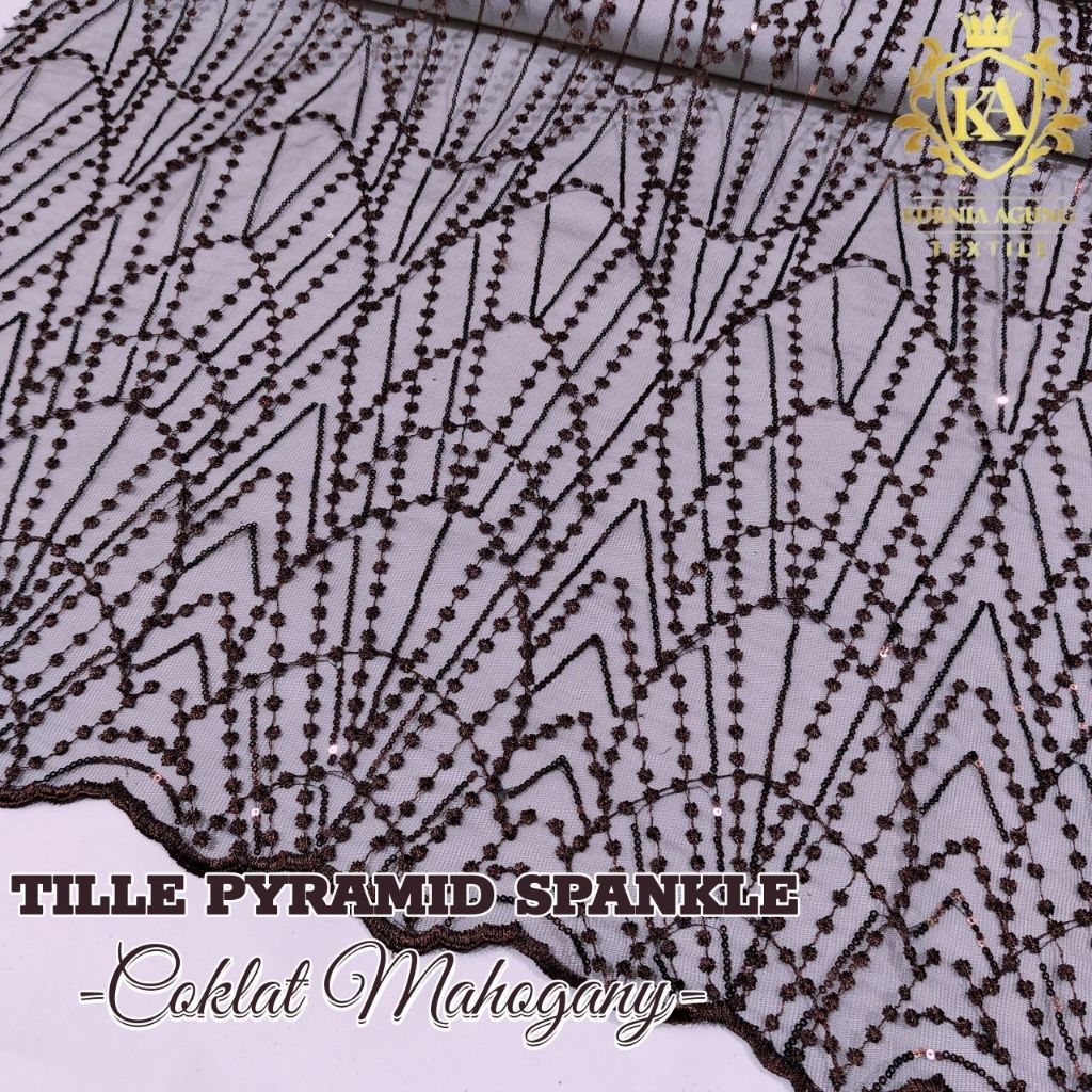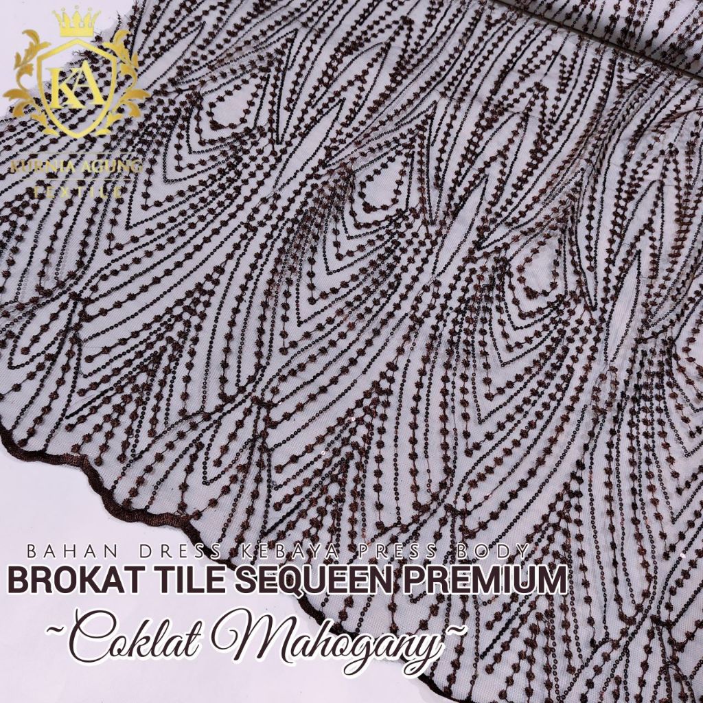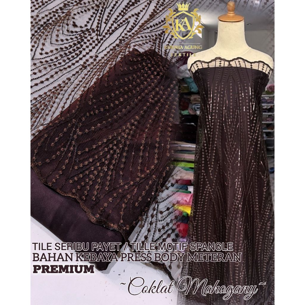 Bahan Kain Warna COKLAT MAHOGANY Series Brukat Tille Payet Premium / Tille Squeen Spaingkel Payet Meteran