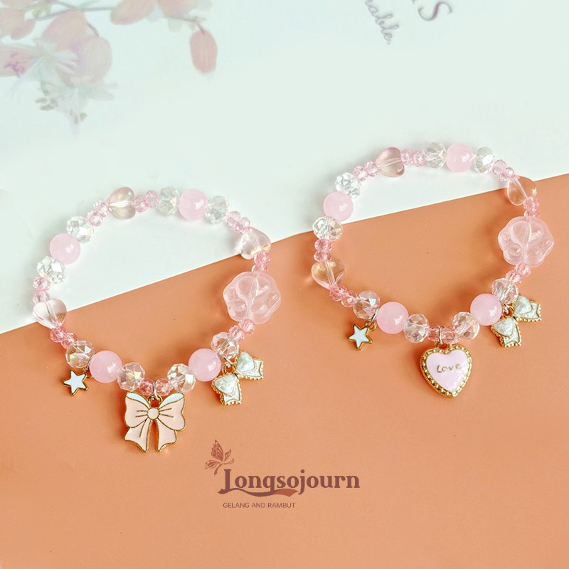 CODGelang Kartun Lucu Melody Gelang Kristal Kuku Kucing Hati Berbentuk Manik-Manik Hadiah untuk Anak-Anak dan Pelajar-LSJ