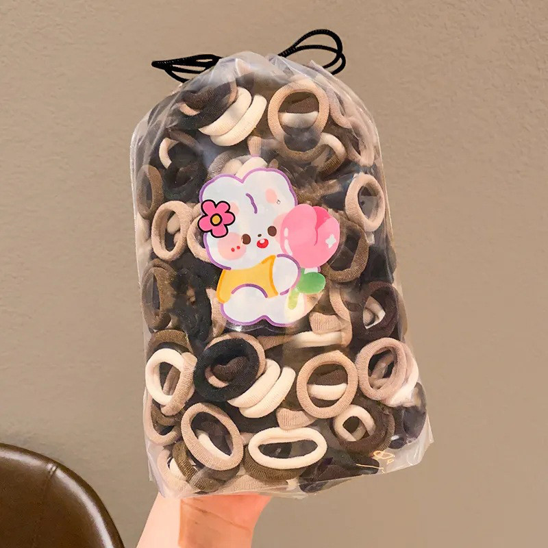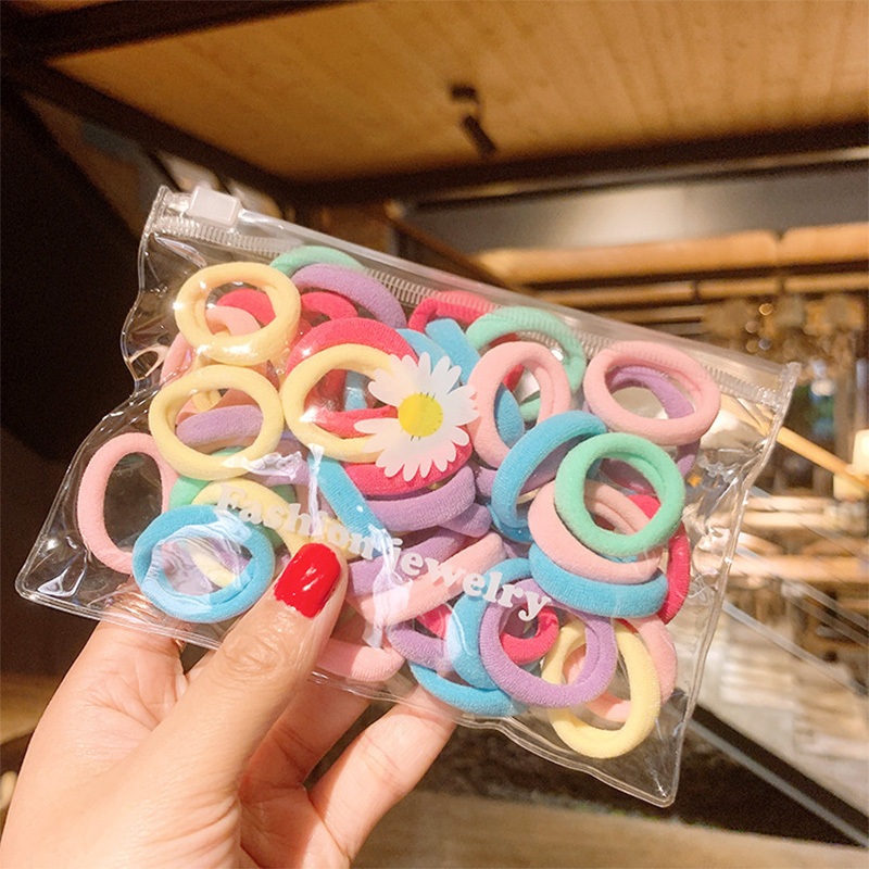 COD 100 PCS Ikat Rambut Korea Warna Warni Ikat Karet Rambut Donat Elastis Mini Untuk Wanita Gaya Pouch Aksesoris Rambut Anak-anak