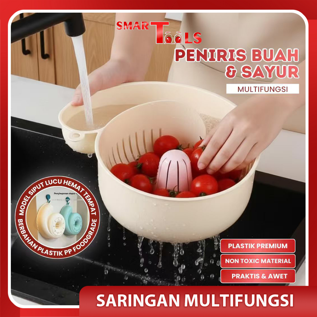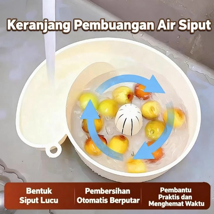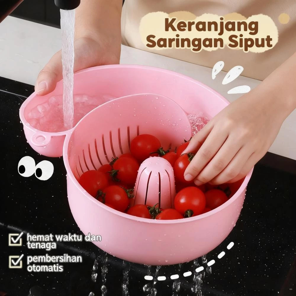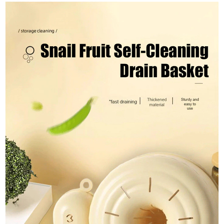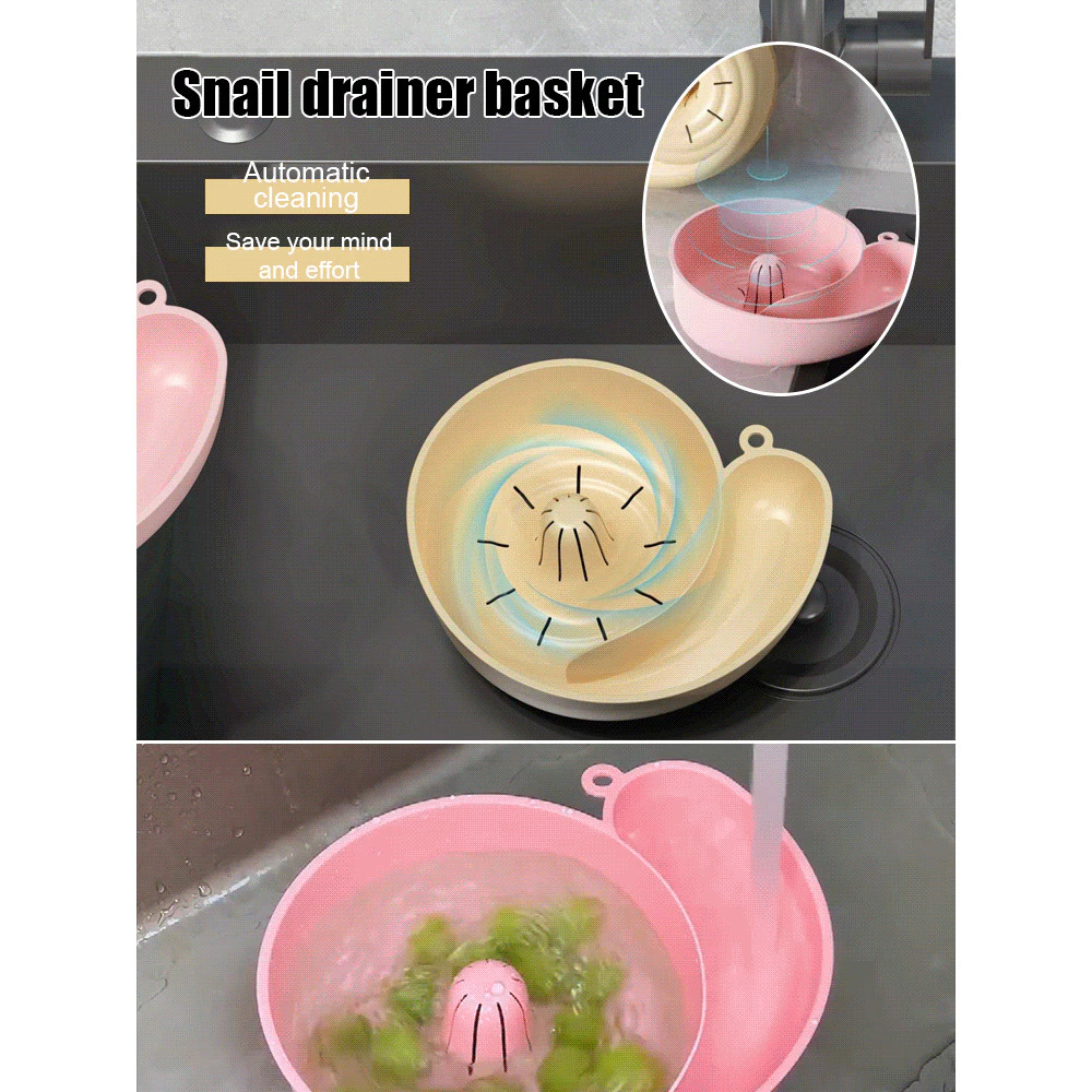 SmartTools - Keranjang / Tempat Cuci Buah Otomatis Karakter Siput / Bentuk Siput Lucu Multifungsi (Cuci Buah, Tiriskan, Saring Beras) Gantung di Dapur / Hemat Tempat(COD)
