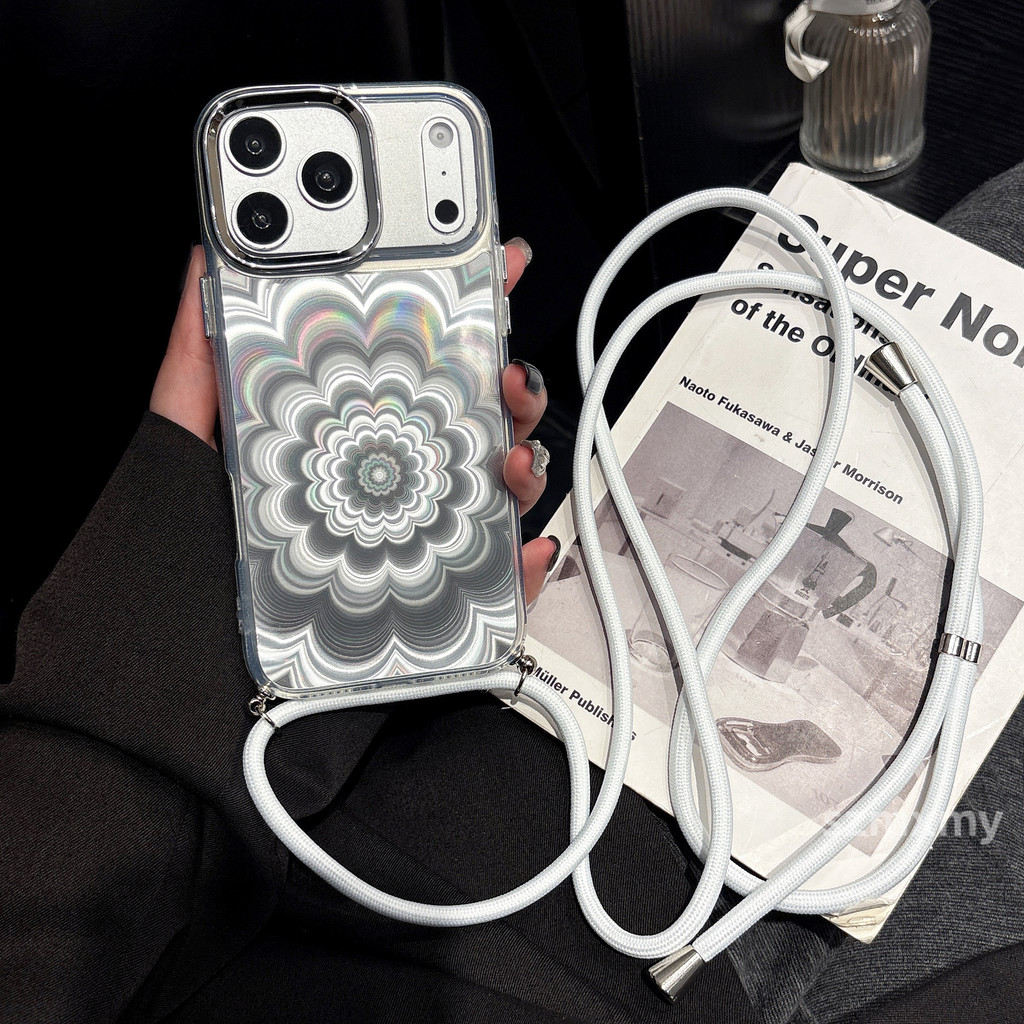 New 3D Phantom Flower Plated Phone Case Suitable for IPhone 17 16 15 14 13 12 11 Pro X/xs Max 7/8 Plus 16e 17air Silicone Soft Edge Shockproof Rear Cover with Long Lanyard
