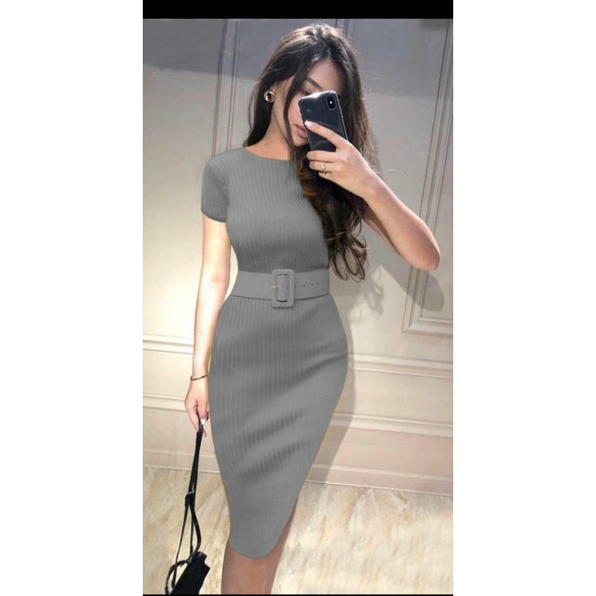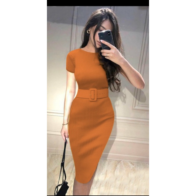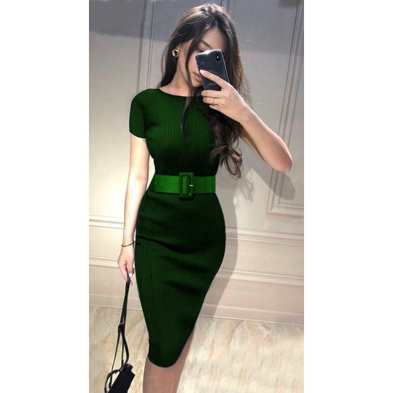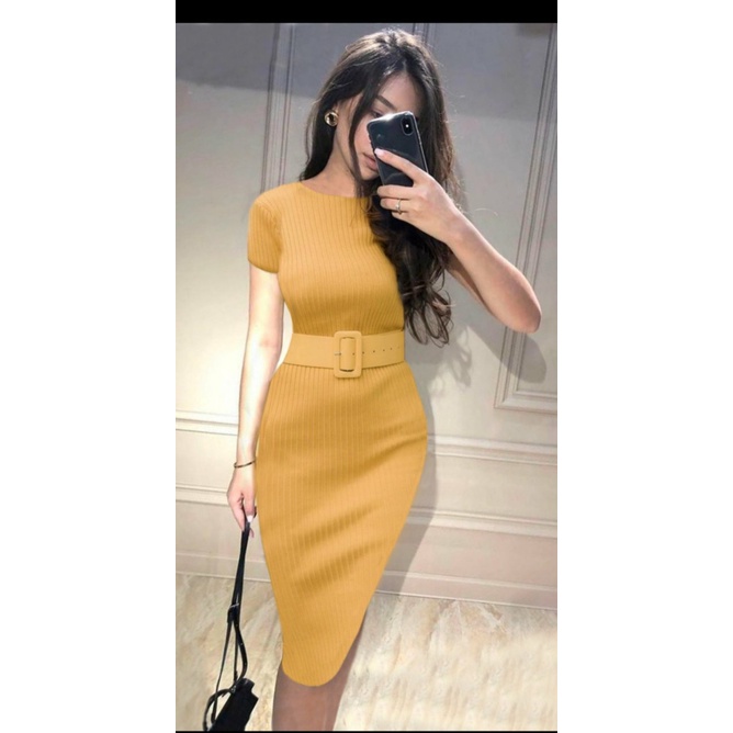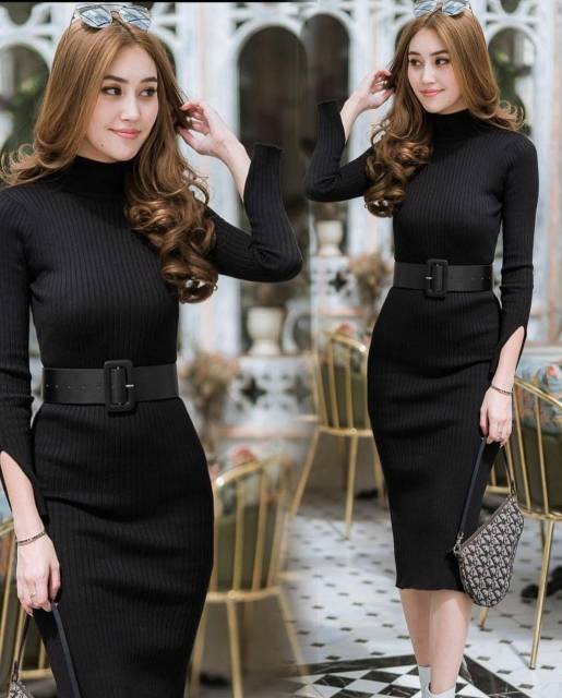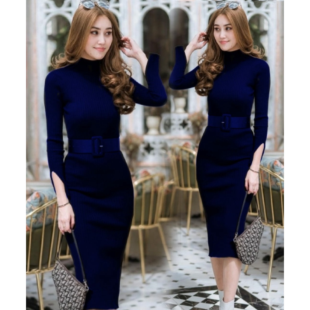 COD✔Dress wanita rajut LP free belt fbb / pakaian wanita dress panjang bodycon / dress nicole rajut