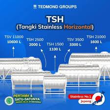 tangki toren tandon air industri proyek pabrik atas stainless stenlis steel horizontal merek tedmond grand tipe tsh 3500 volume 3300 3000 liter anti lumut murah bebas kuras di surabaya sidoarjo gresik jawa timur tengah barat jabodetabek kualitas penguin