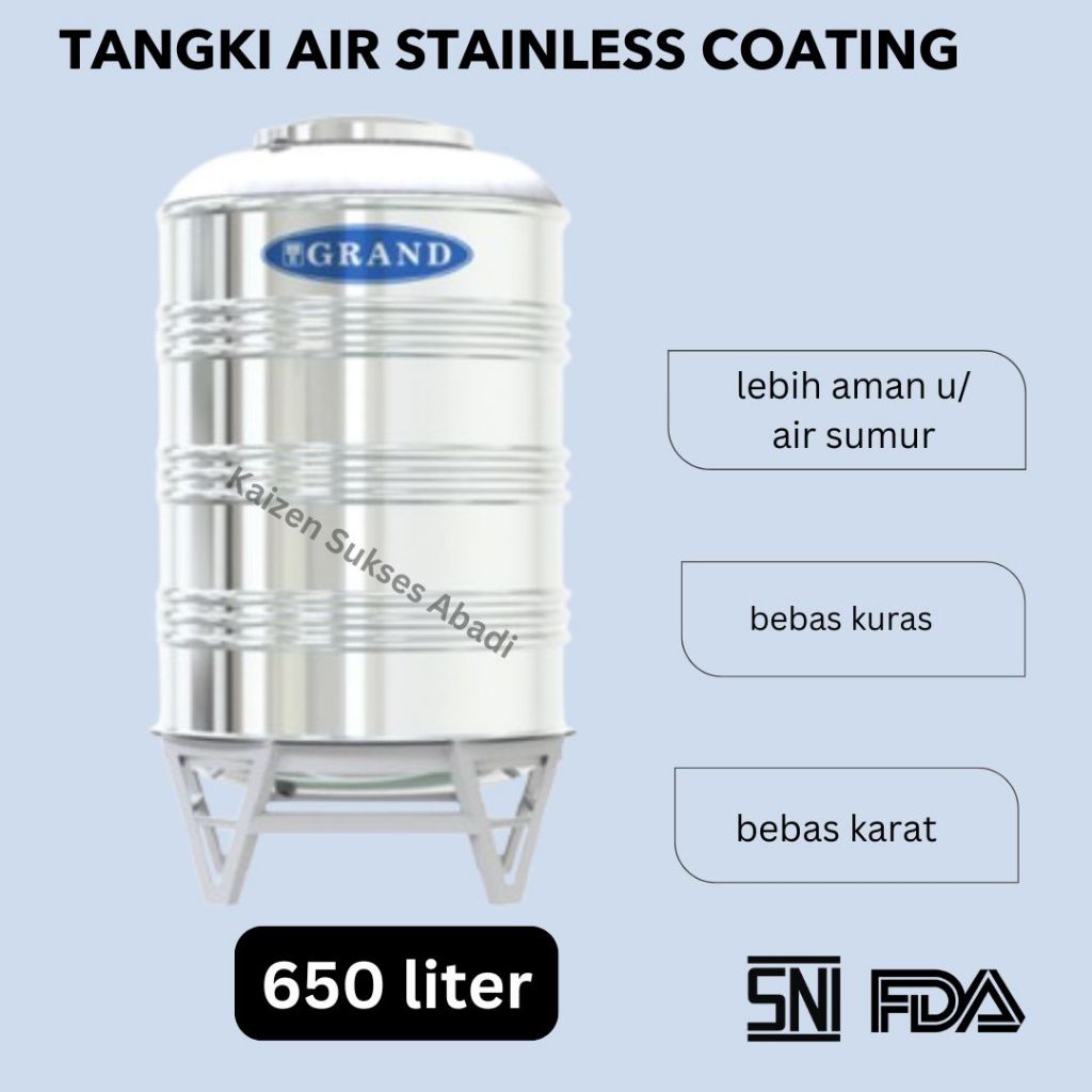 tangki toren tandon air atas rumah stainless stenlis steel merek tedmond grand tipe tsv 1000 coating volume 650 600 liter untuk air sumur anti lumut murah bebas kuras di surabaya sidoarjo gresik jawa timur tengah barat jabodetabek kualitas penguin