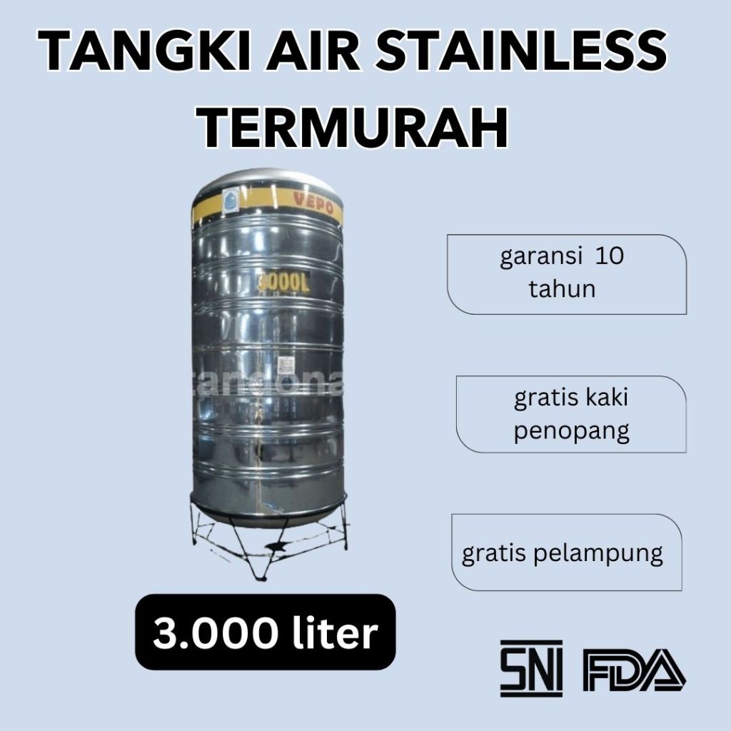 tangki toren tandon air vepo stainless stenlis steel 3000 liter anti lumut kuat awet murah terdekat garansi gratis ongkir di surabaya sidoarjo gresik jawa timur