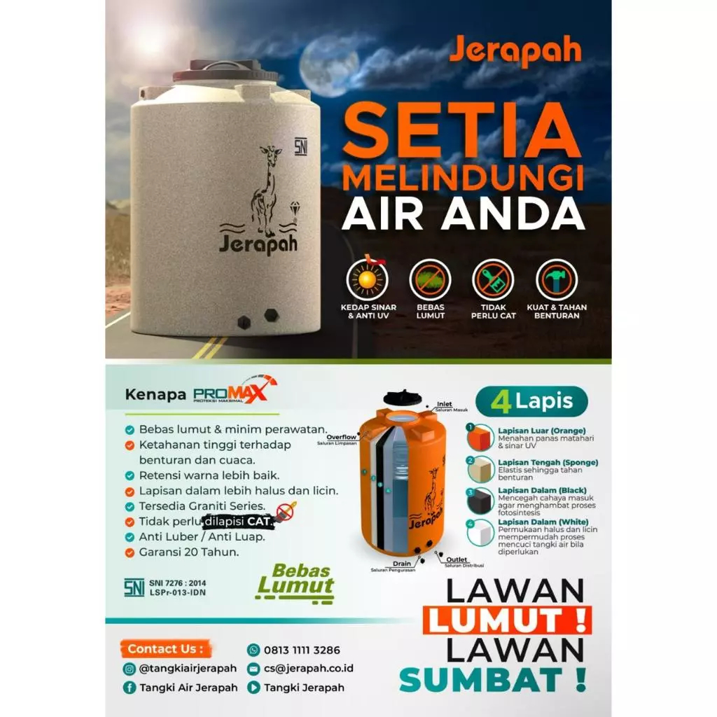 tandon tangki toren air atas rumah plastik merek jerapah regular reguler classic TBJ 900 800 Liter tebal 4 lapis anti lumut kualitas penguin termurah garansi 20 tahun surabaya sidoarjo gresik jawa timur