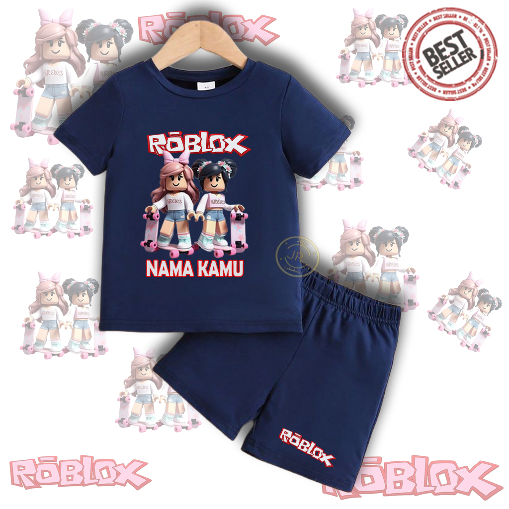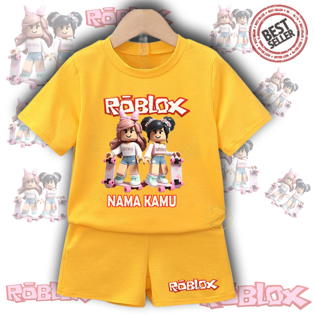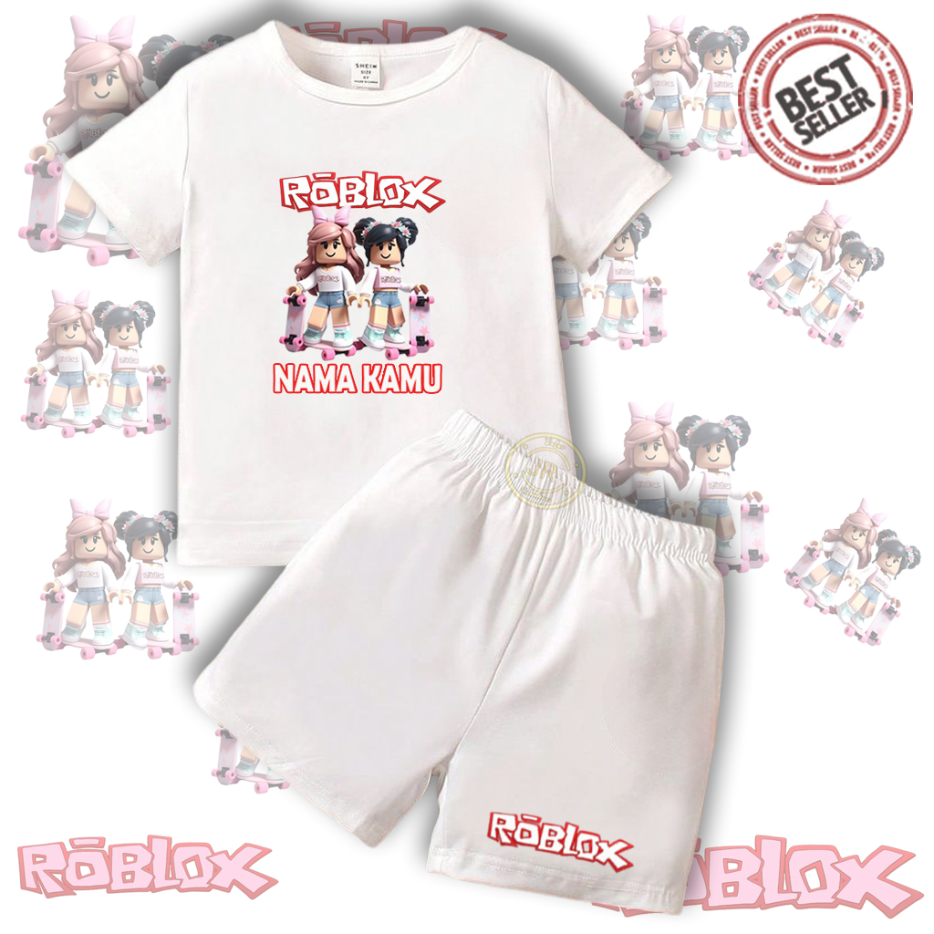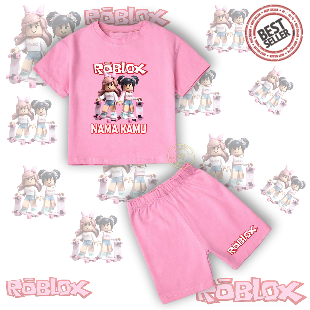 Setelan Anak Perempuan Roblox Cewek Custom Nama – Kaos & Celana Pink Lucu, Nyaman Dipakai