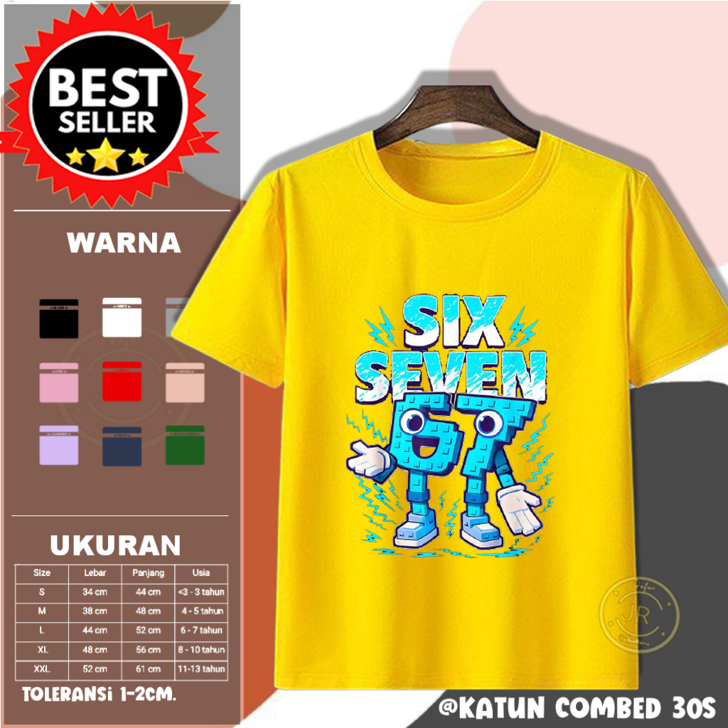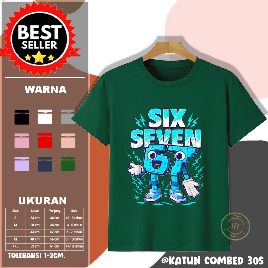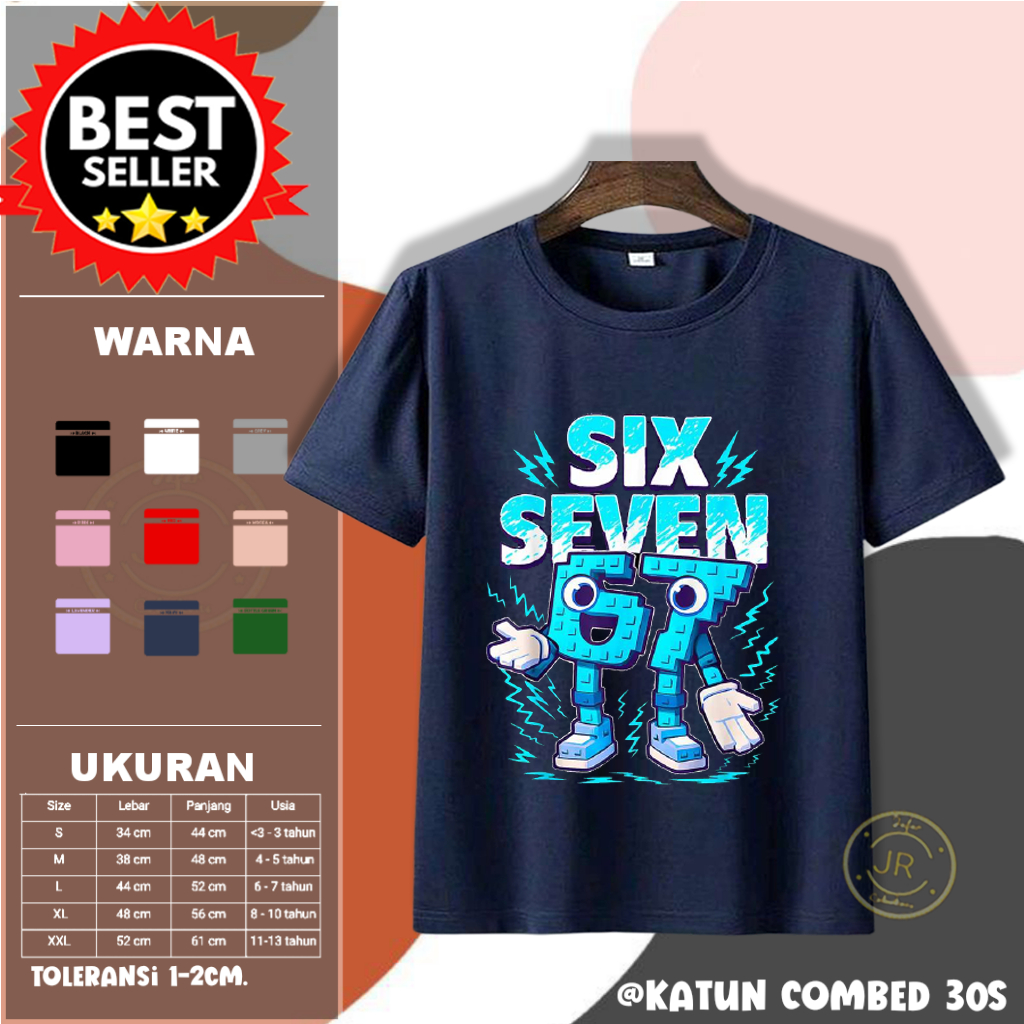 Kaos Anak Anomali 67 Six Seven Brainrot Katun Combed 30s Lengan Pendek