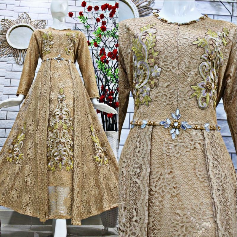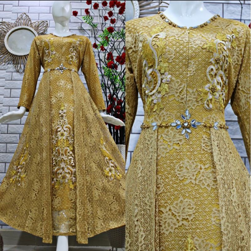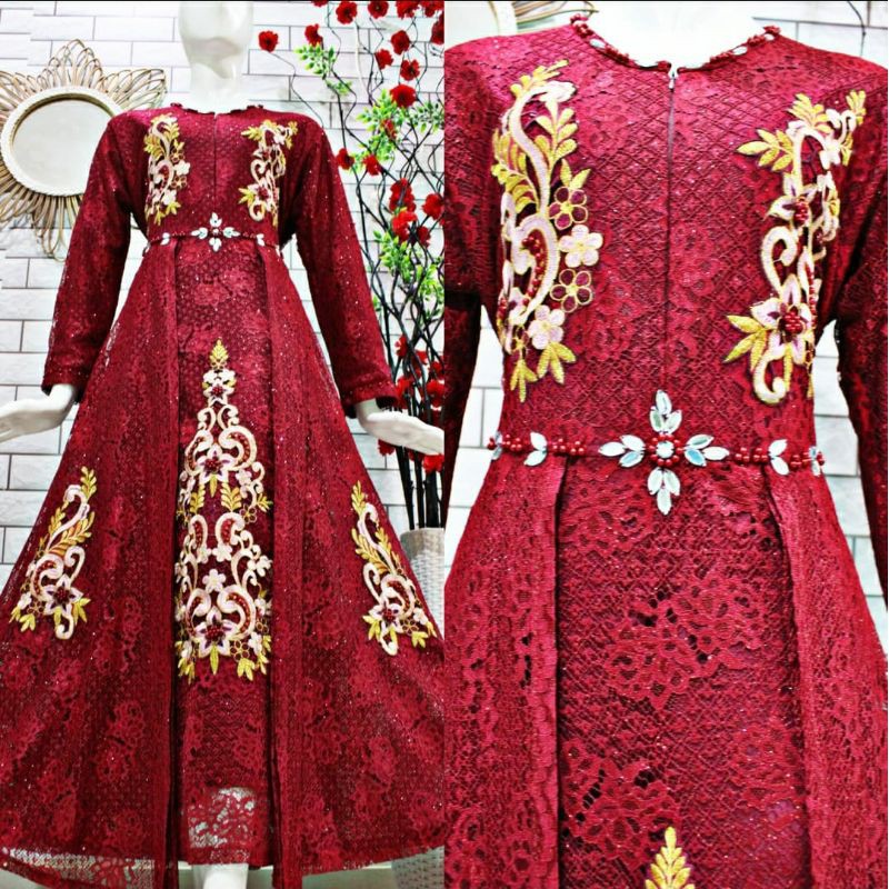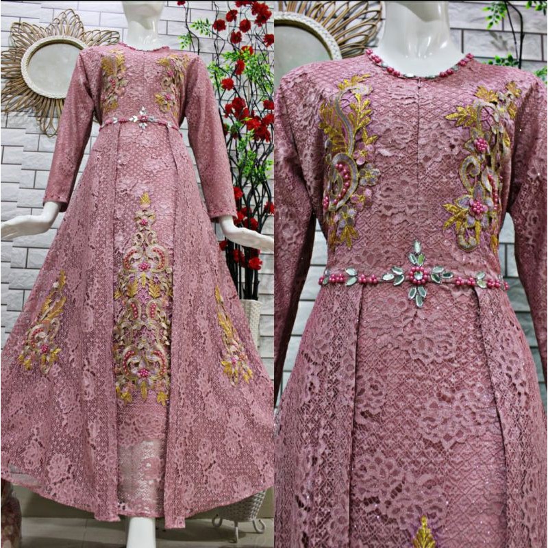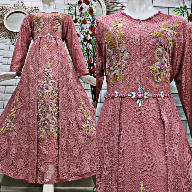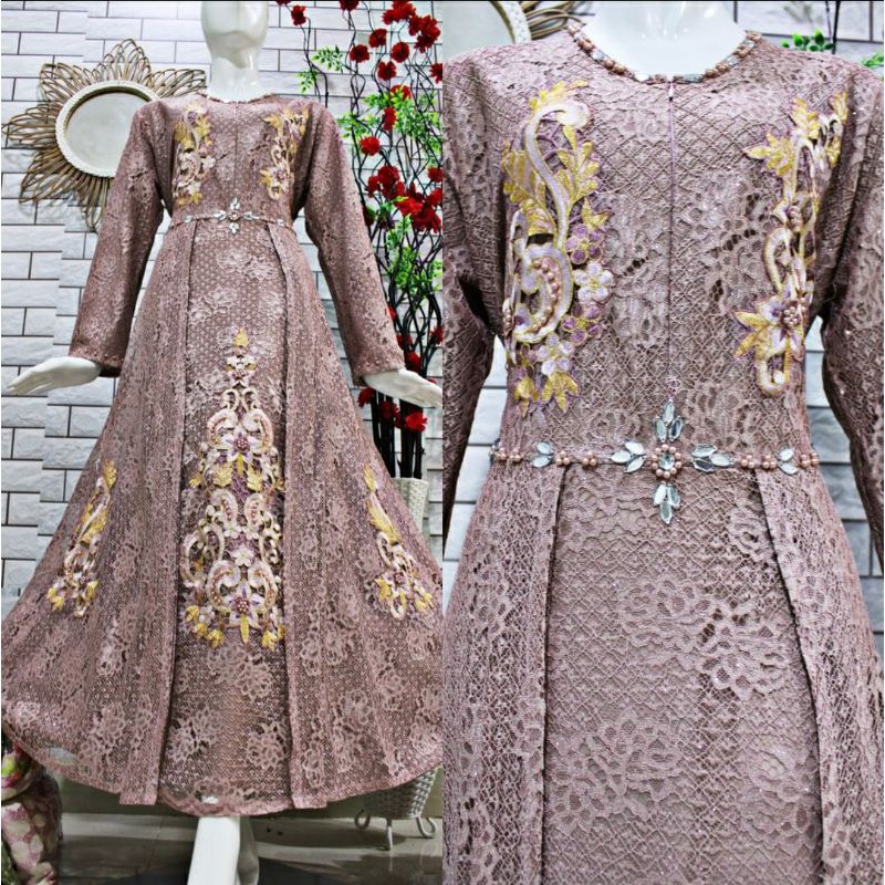 (COD)GAMIS BROKAT BORDIR/GAMIS PESTA MEWAH
