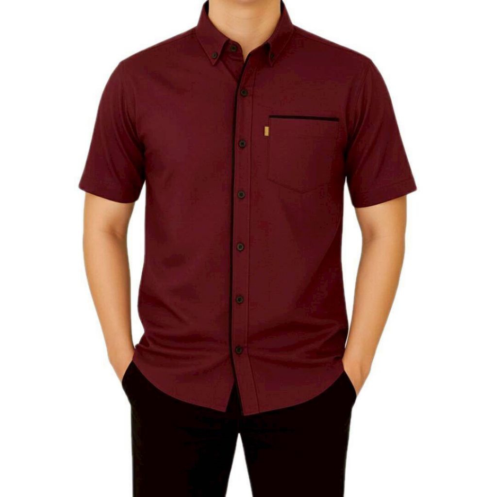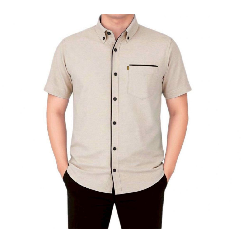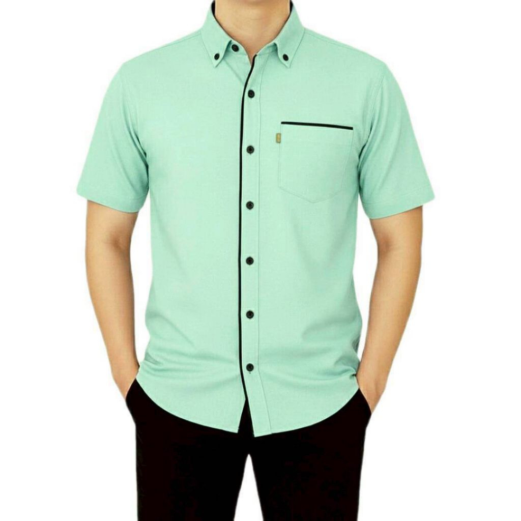 Kemeja Polos List Pria Lengan Pendek Model Korean Style Casual Elegan Mewah Banyak Pilihan Warna Kekinian Berkualitas Bahan Tebal