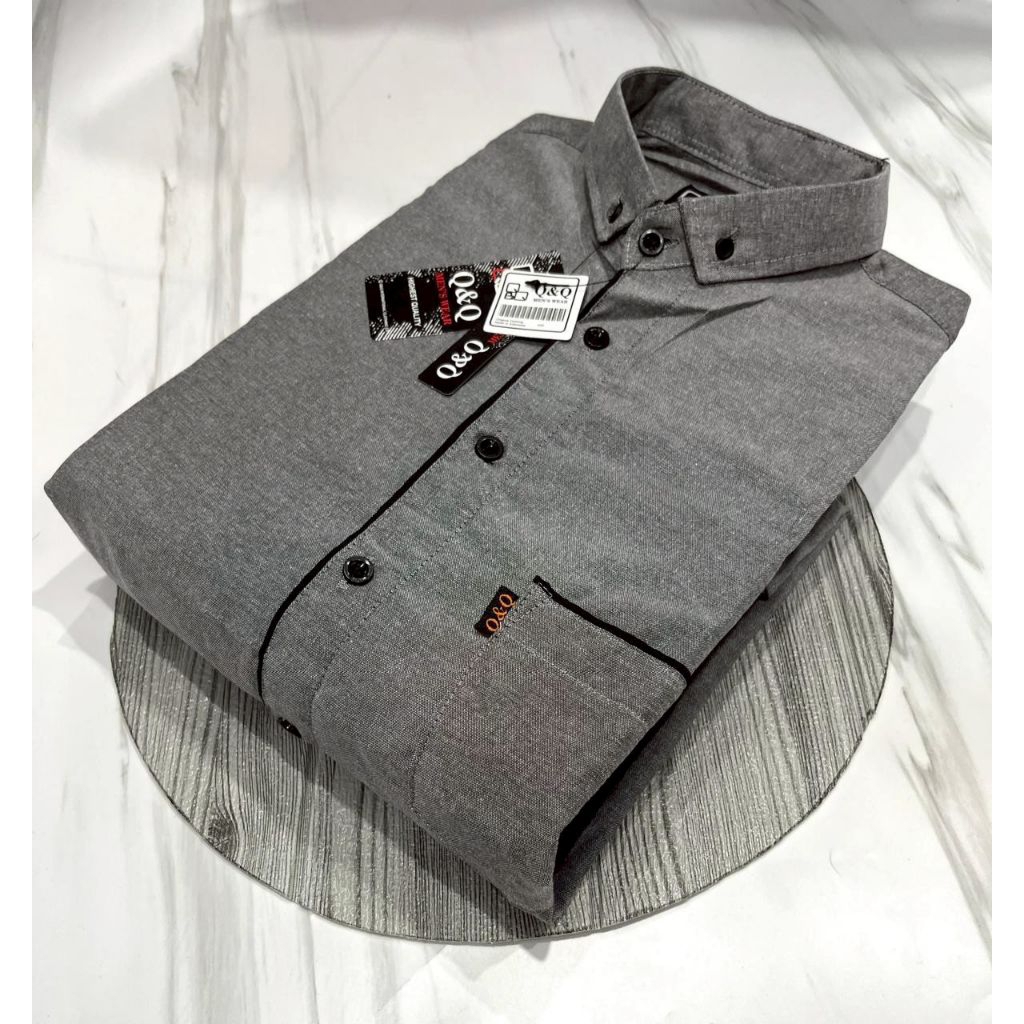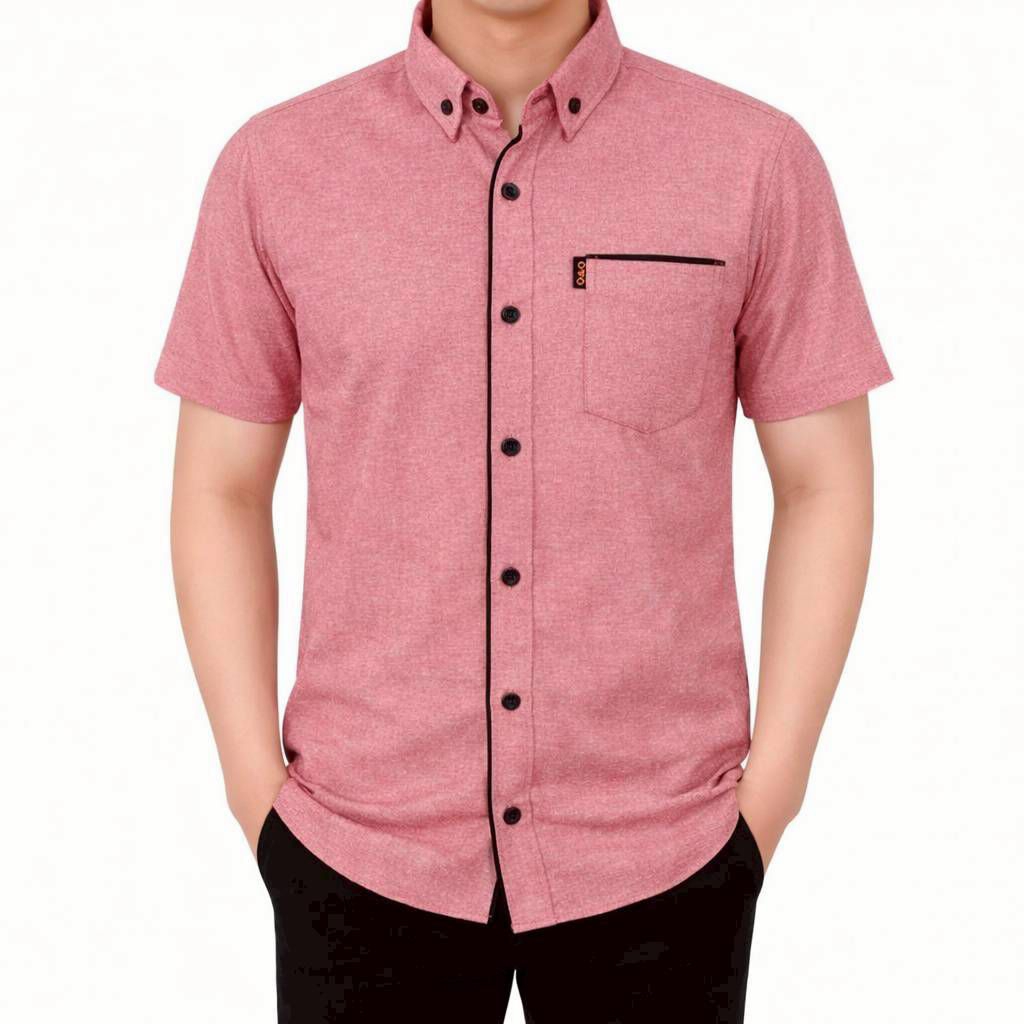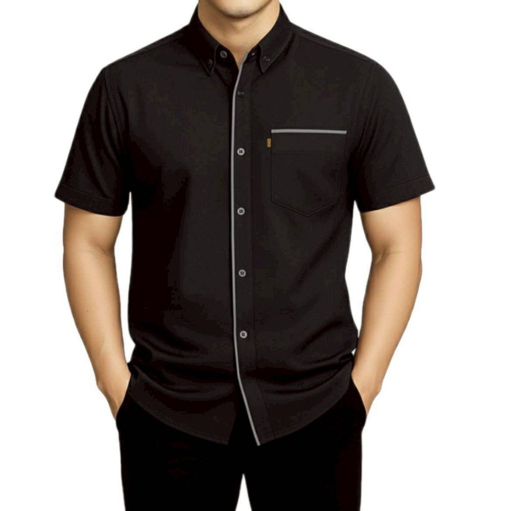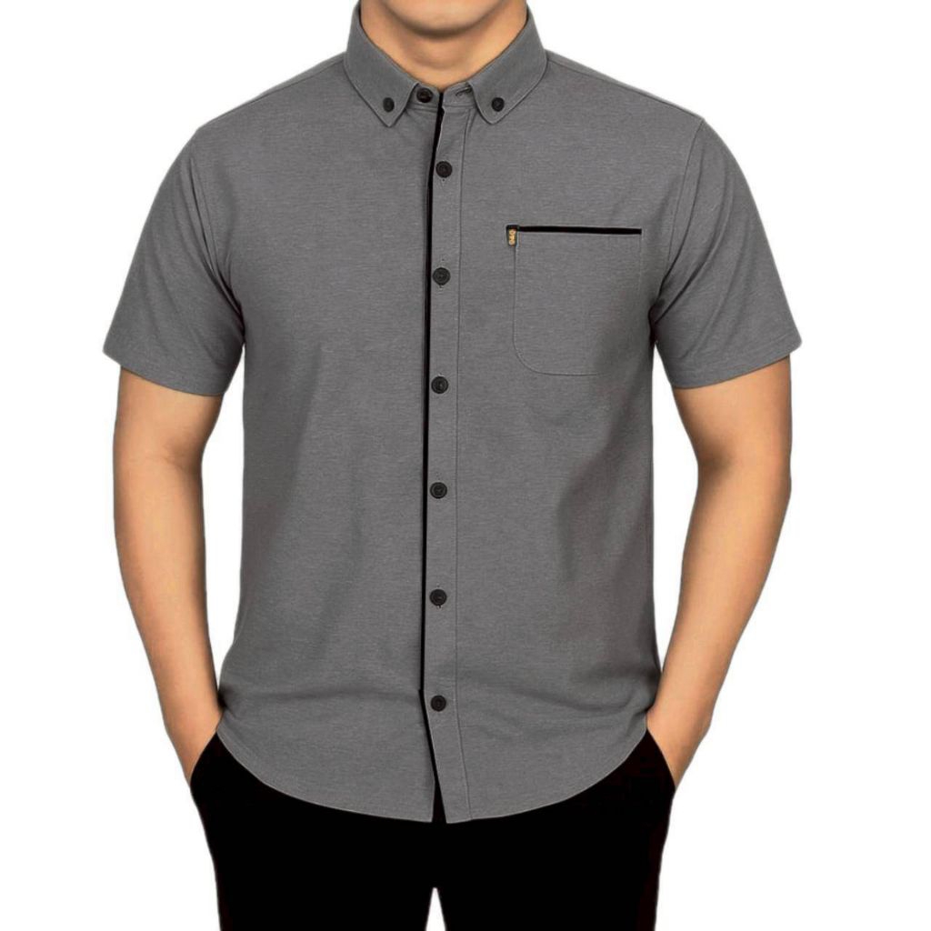 Kemeja Polos List Pria Lengan Pendek Model Korean Style Casual Elegan Mewah Banyak Pilihan Warna Kekinian Berkualitas Bahan Tebal