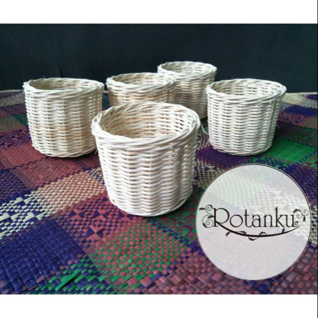 Keranjang rotan bentuk pot tempat bunga souvenir hamper tempat kuas makeup