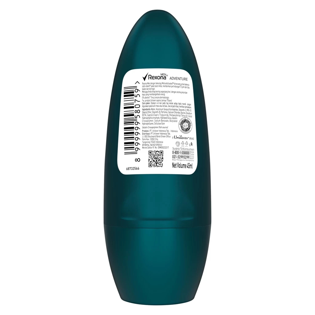 Rexona Men Deodorant Roll On Antiperspirant Adventure 72 Jam Kesegaran Nonstop 45Ml