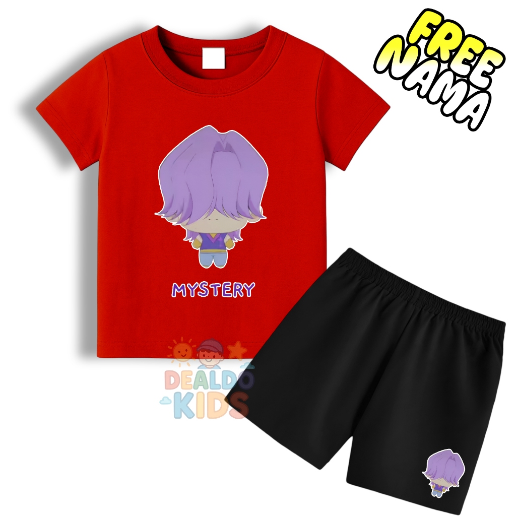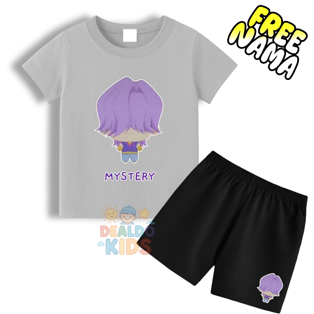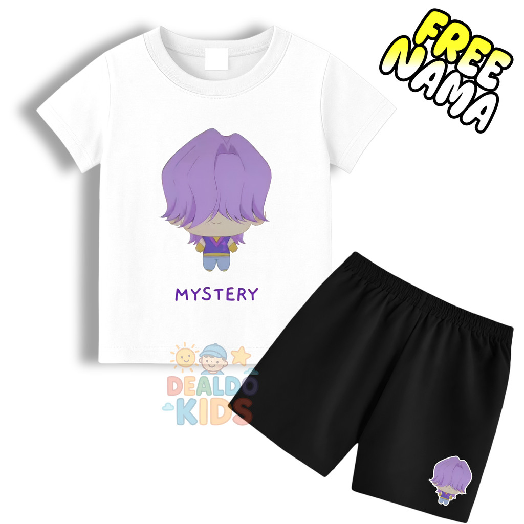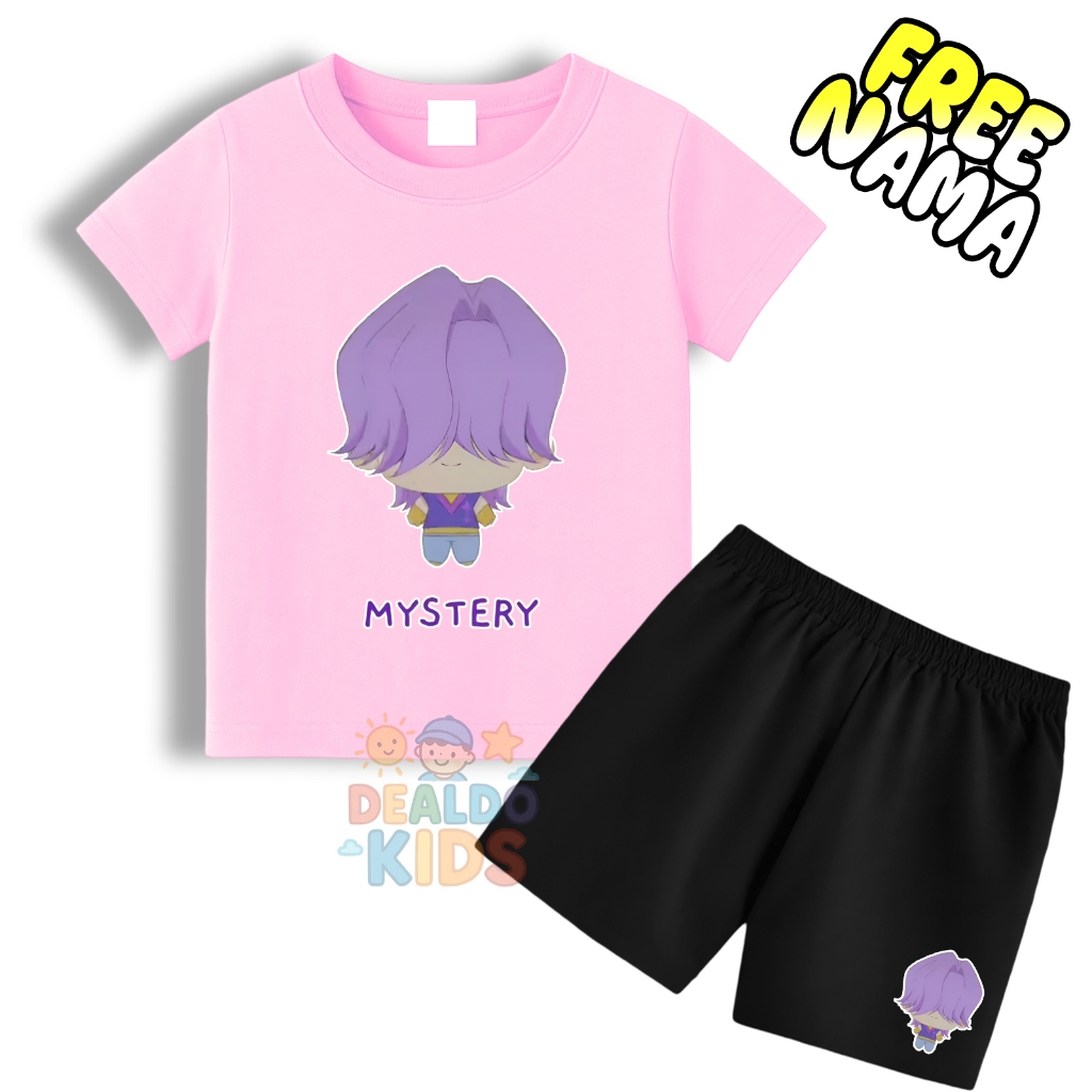 Setelan kaos celana anak animasi huntrix demon hunter karakter mystery free nama - Stelan kaos anak gratis tambah nama