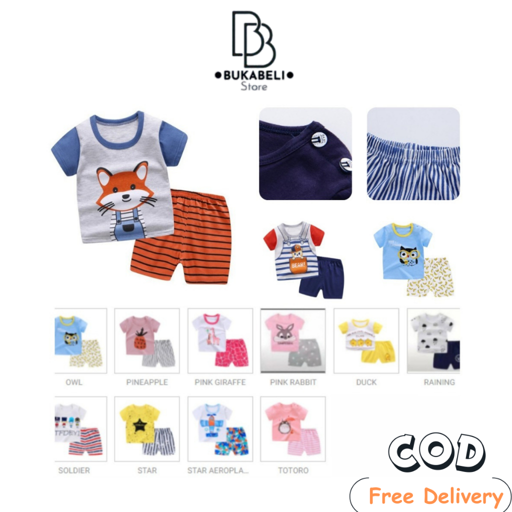 (CUCI GUDANG) BUKABELI Piyama Baju Anak Lengan Pendek/ Baju Tidur / Baju Santai Motif Karakter Anak Import COD BB01