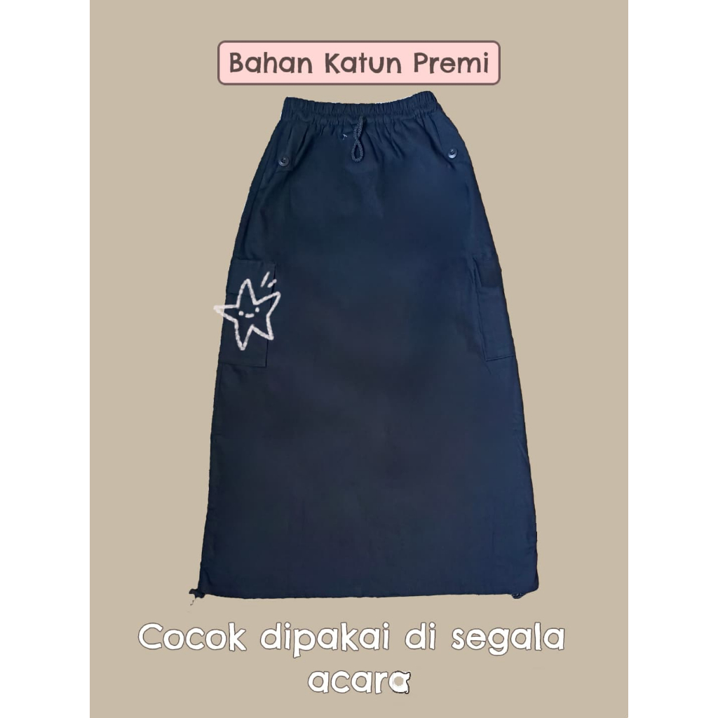 Rok Cargo Span / Rok Wanita Panjang Korean Style / Tebal Melar Elastis
