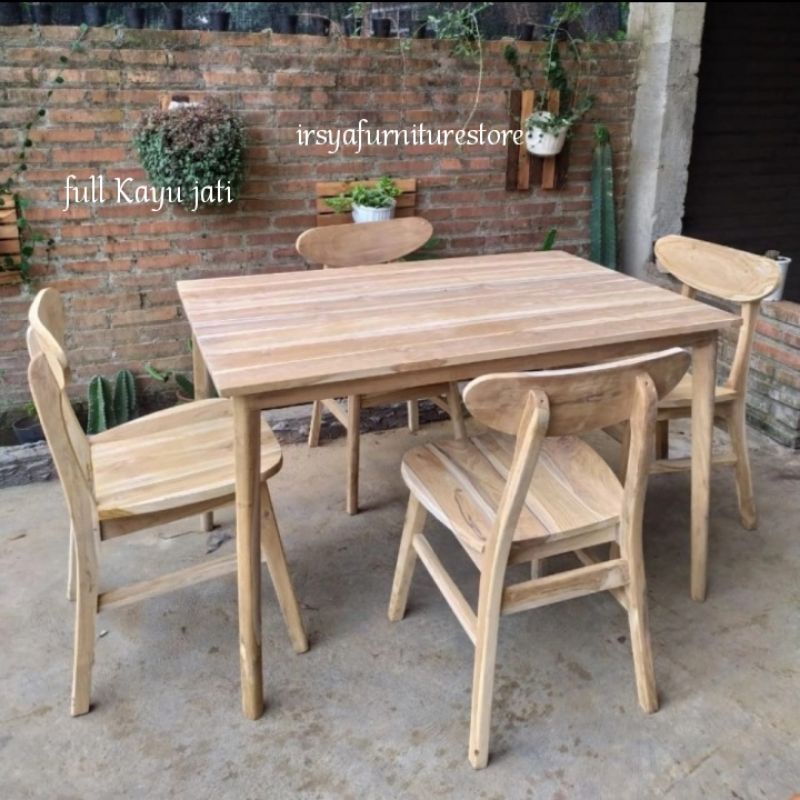 Kursi Makan Minimalis Kayu Jati - Set Meja Makan Jati 4 Kursi