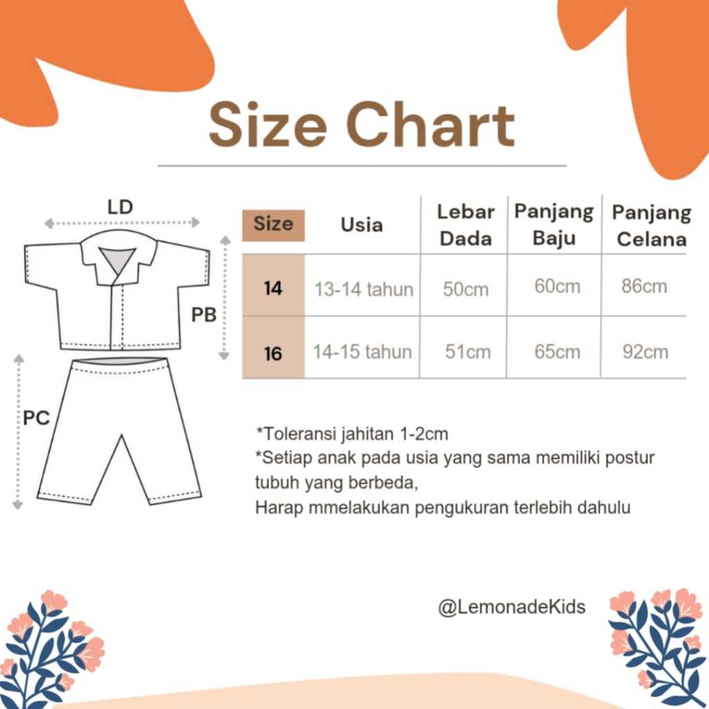 Lemonade Piyama Anak Perempuan Usia 1-12 Tahun Cute 336