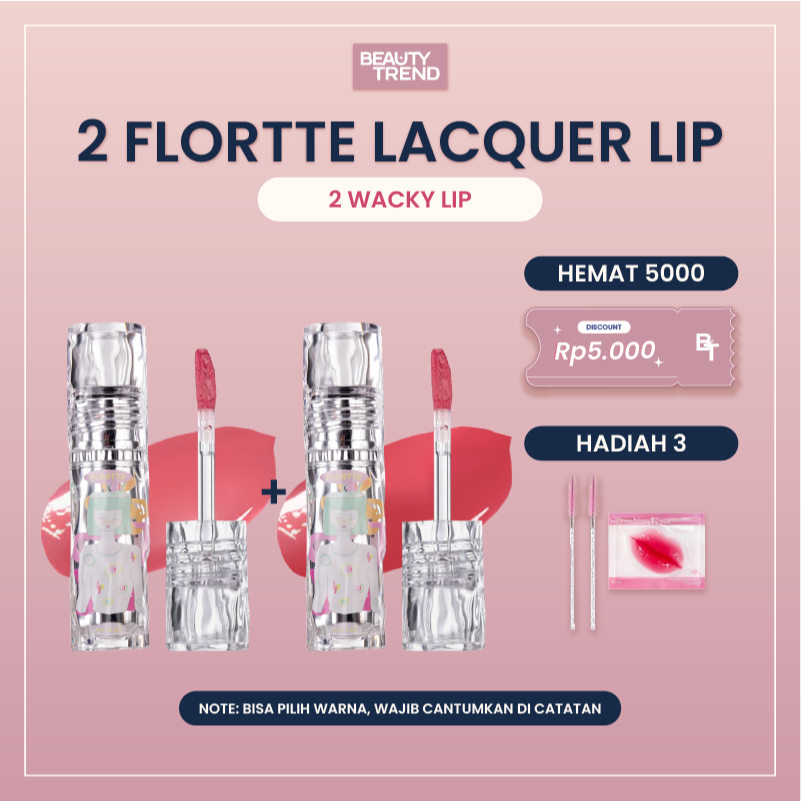 [READY ORI] Flortte Lip Lacquer Hello Beauty Lip Gloss Glossy Lembab Tahan Lama Tidak Transfer