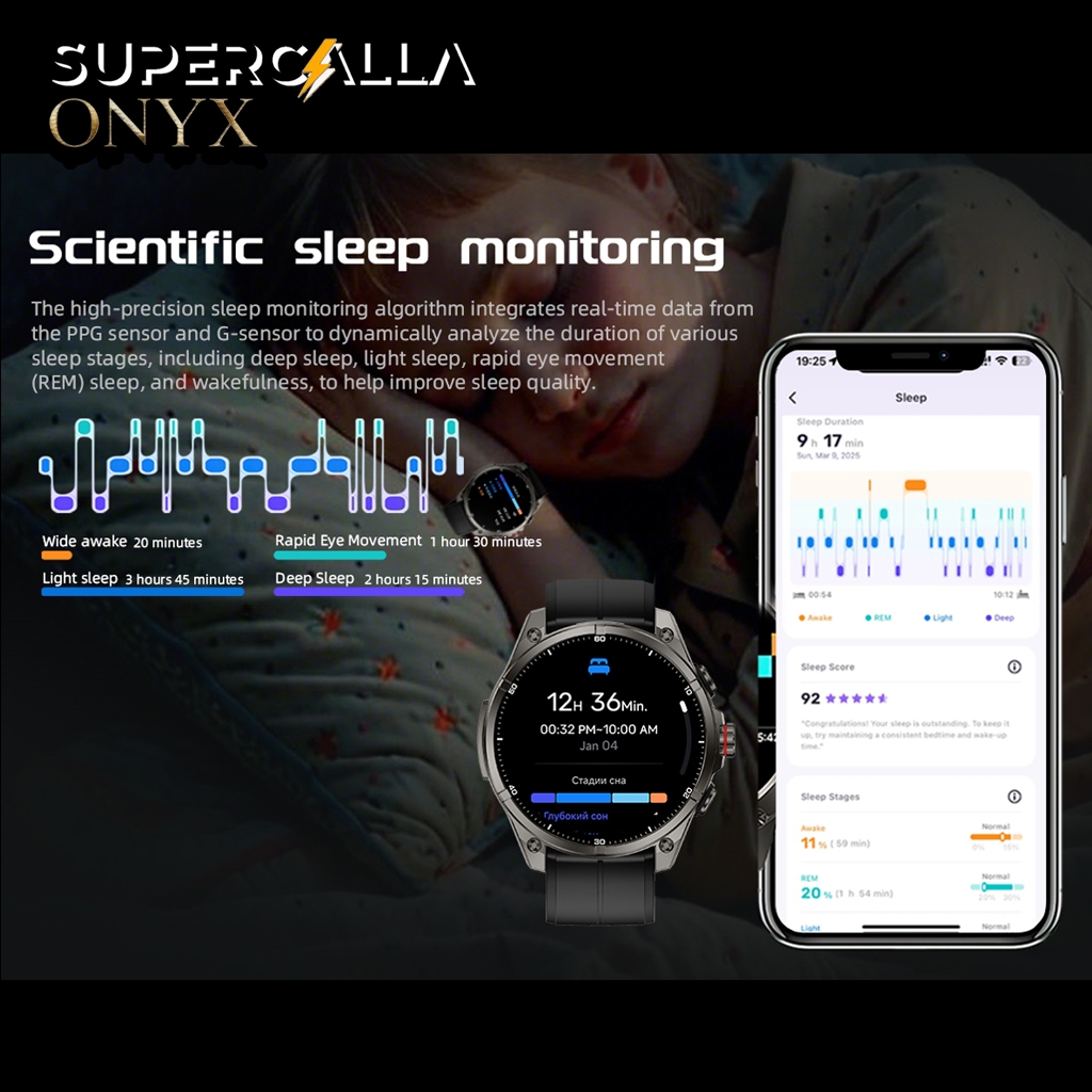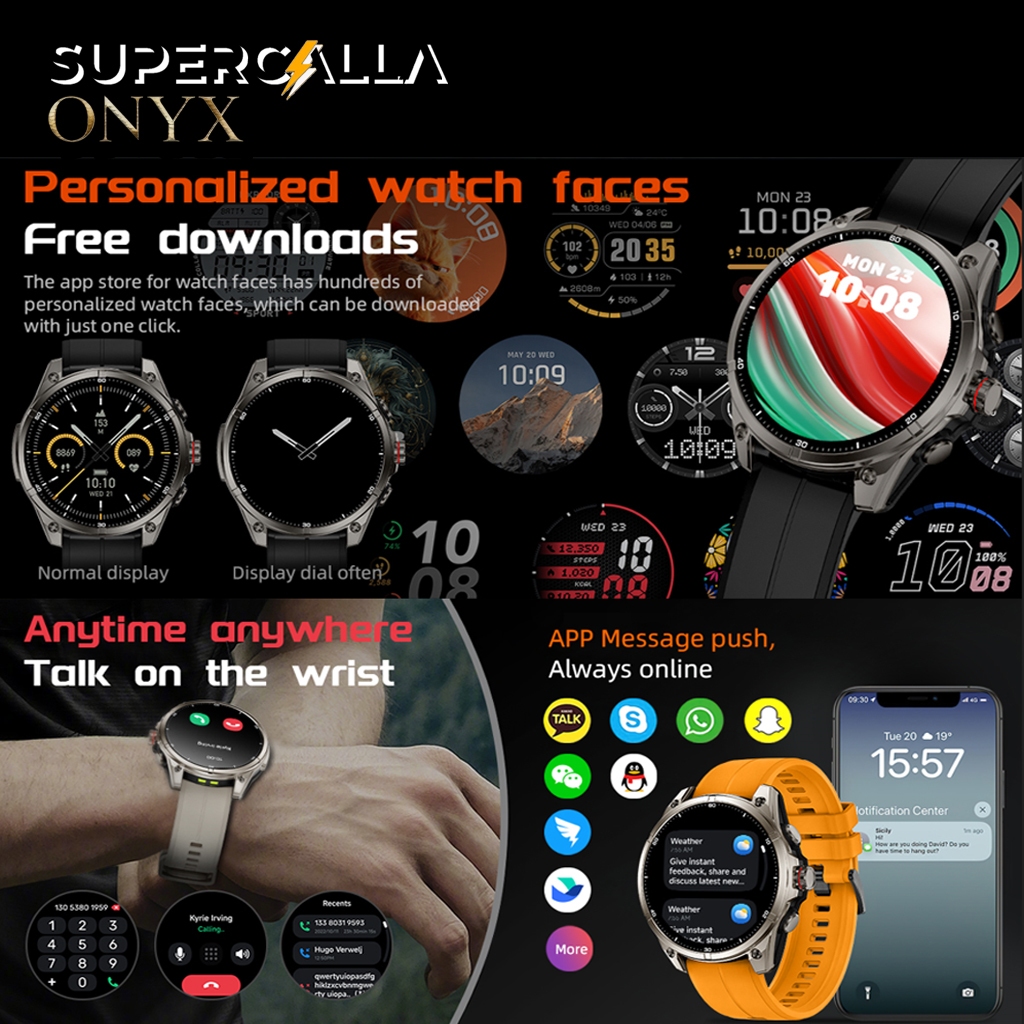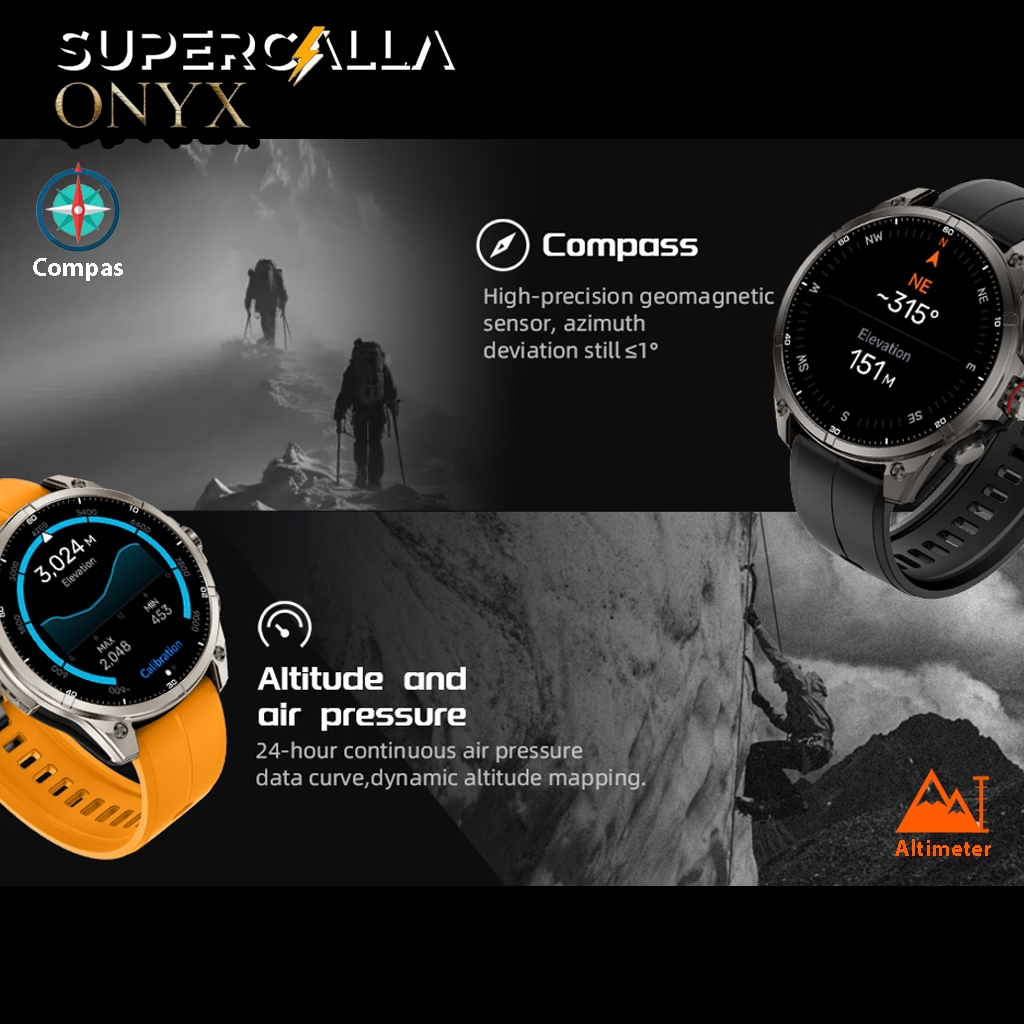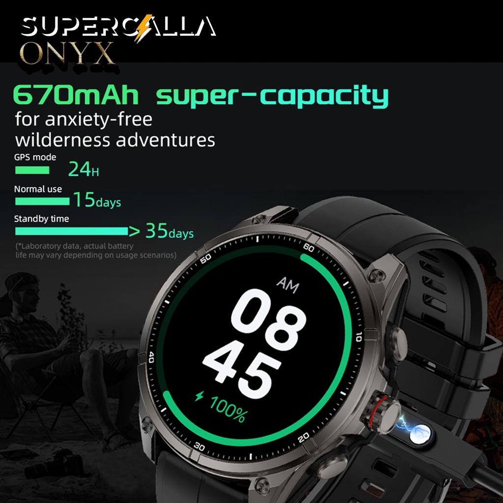 Supercalla ONYX Outdoor GPS 1.43" Amoled Smart Watch with Flashlight Compass 670 mAh Relojes Men Sports Health Monitor Smartwatch
