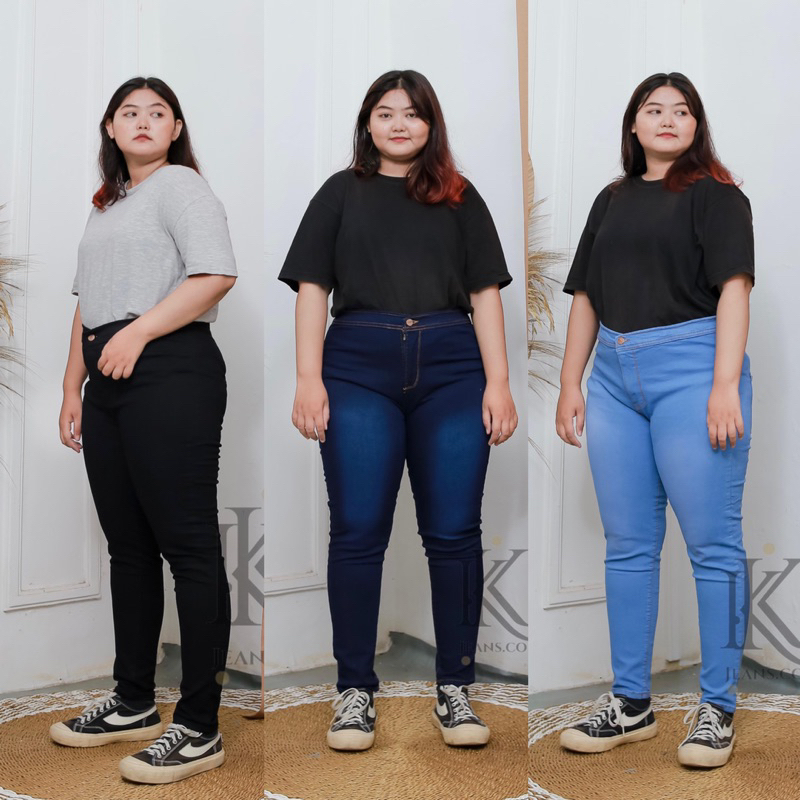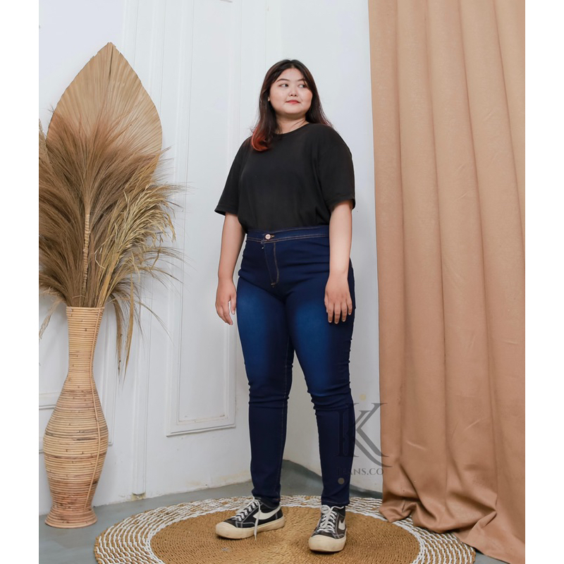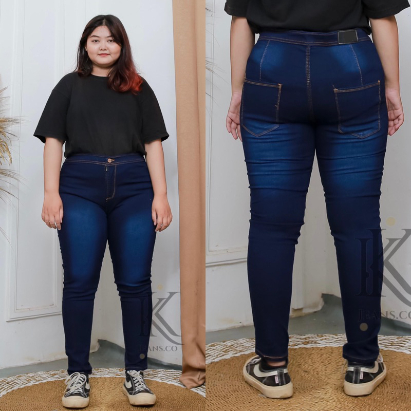 Highwais Jeans Jumbo Wanita Polos Soft Jeans Premium Big Size 27-42