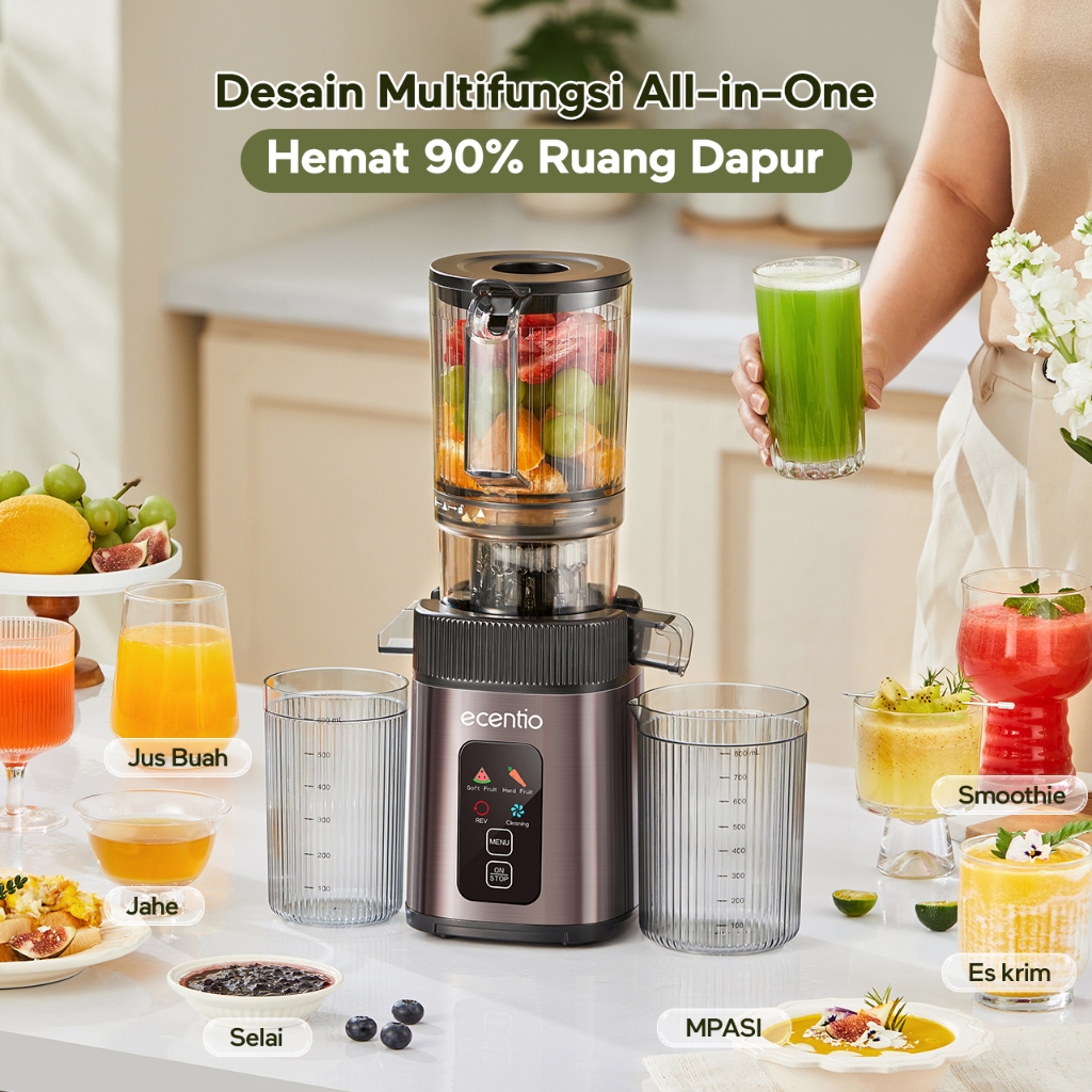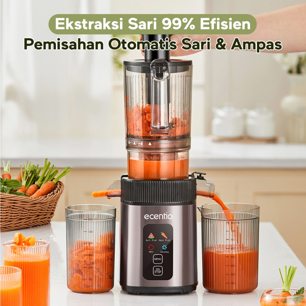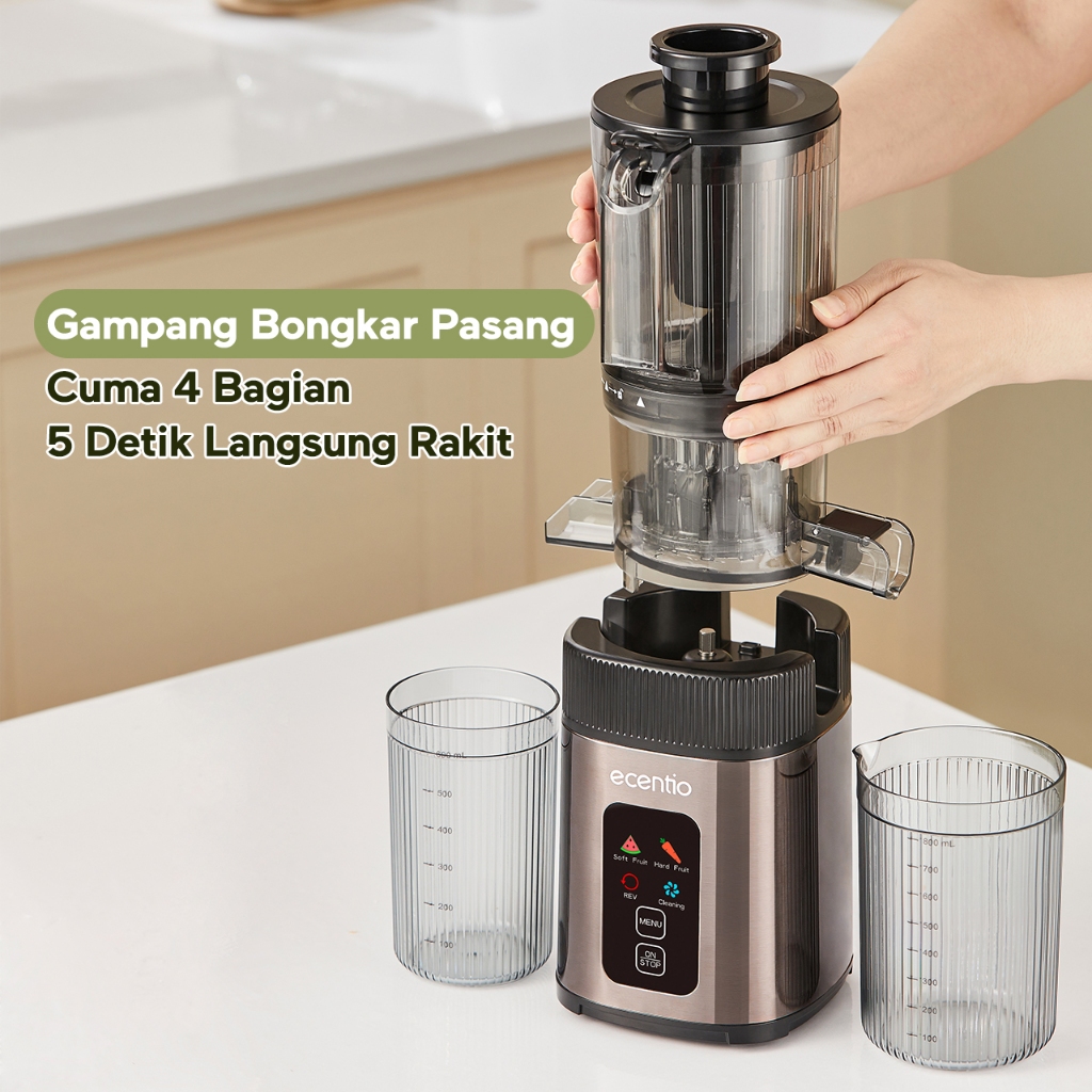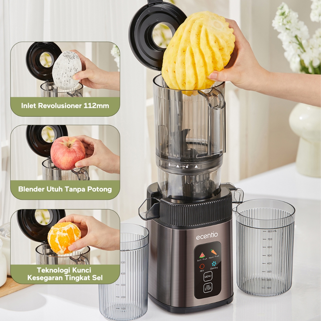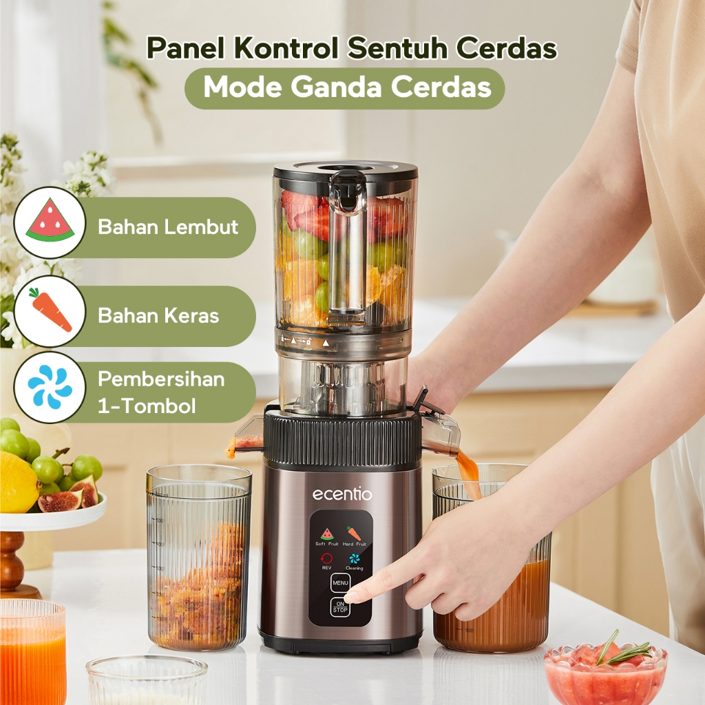 ecentio Smart Slow Juicer 1000ml Besar Cerdas Panel Sentuh Lubang 112mm 99% Ekstraksi Juicer Buah Tanpa Ampas Multifungsi Garansi Resmi 1 Tahun