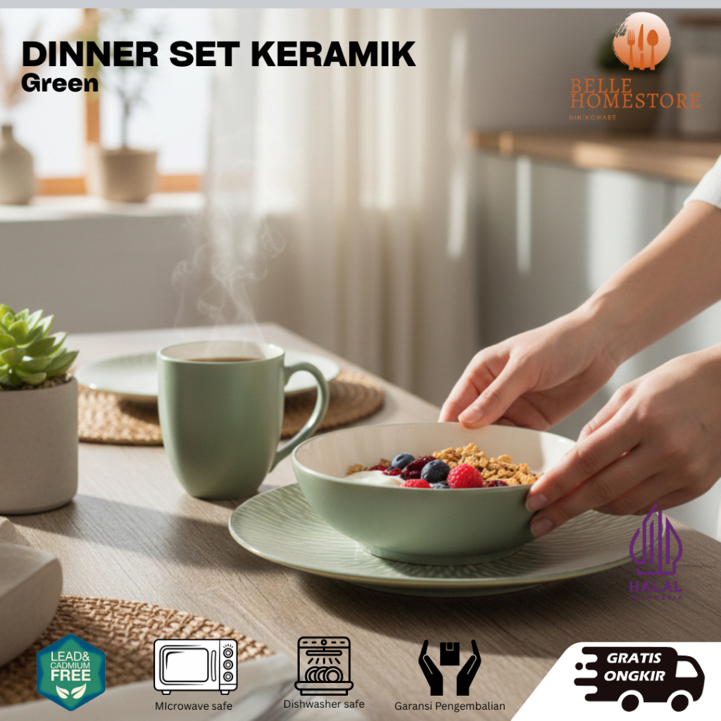 Piring Keramik set aesthetic Dinner plate model kafe, hotel kualitas premium bisa dishwashersafe dan ovensafe