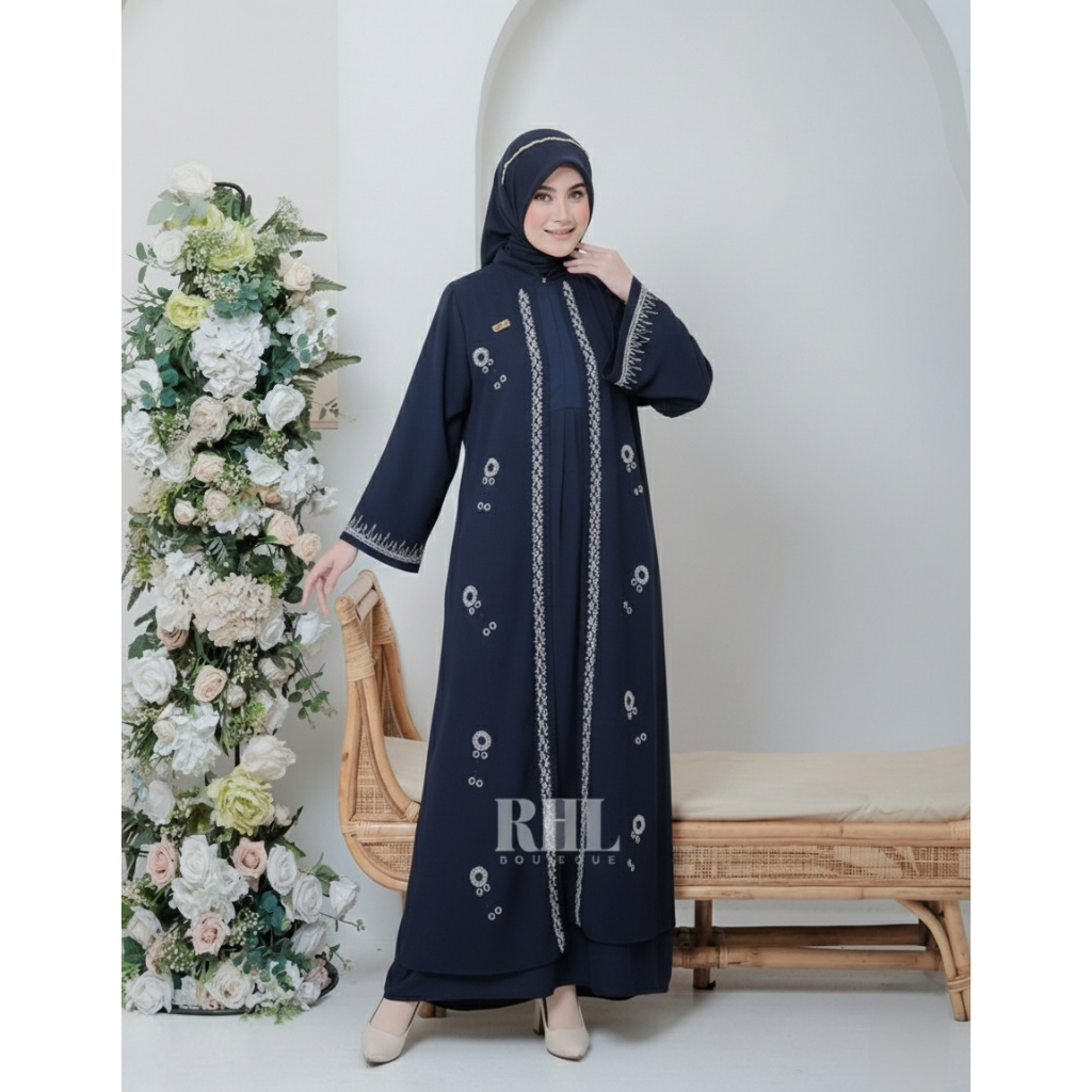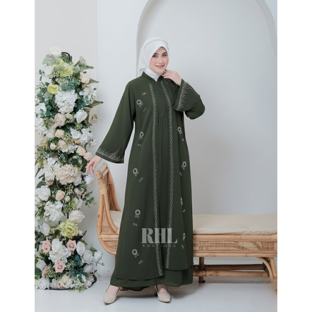 RHL- Dress Gamis Haurra Ceruty Babydoll variasi manik manik mewah wudhu busui friendly