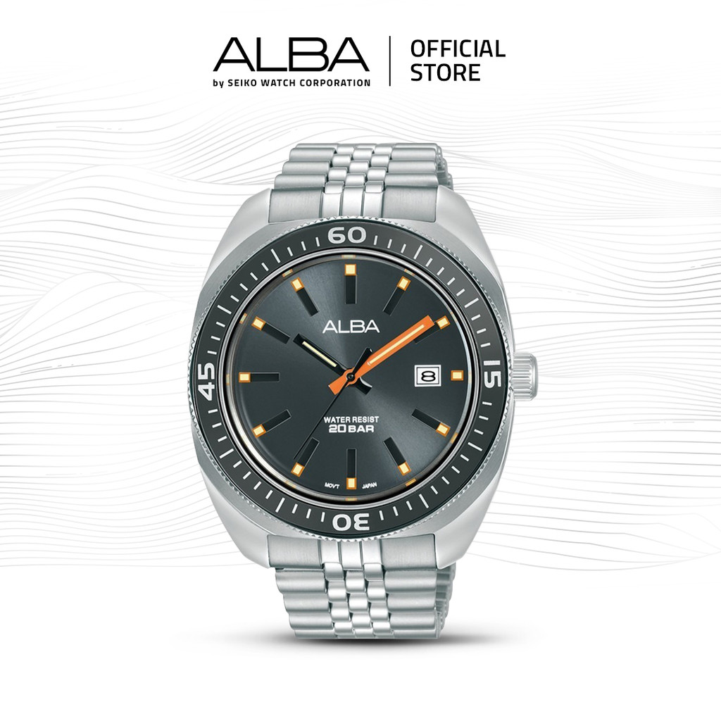 Alba Active Jam Tangan Pria Turtle AS9T87 / AS9T87X1 Quartz Grey Dial Stainless Steel Strap Watch