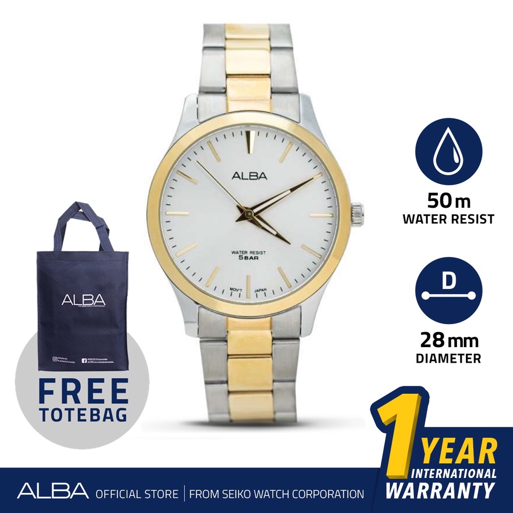 Alba Prestige Jam Tangan Wanita ARSZ12 / ARSZ12X1 Quartz White Dial Two Tone Silver-Gold Stainless Steel Strap Watch