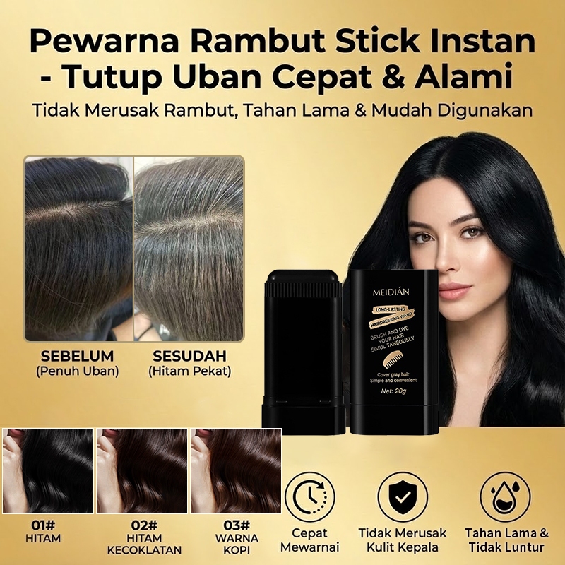 Penutup Uban Instan Hair Stick Sisir - Pewarna Rambut Uban Herbal Waterproof / Stik Semir Penghitam Rambut Sementara Meidián