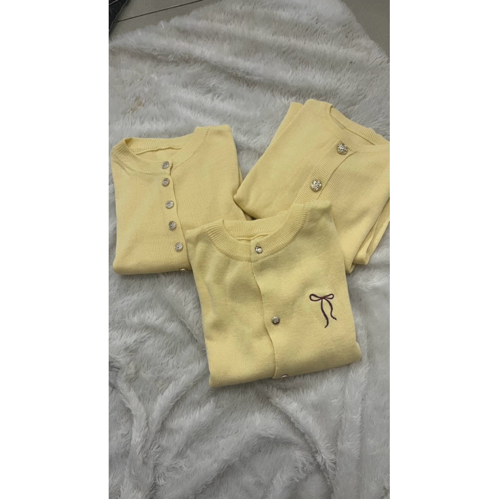 OFASHION Yoma Cardigan Wanita Kuning Soft Yellow Butter Knitwear Korean Style