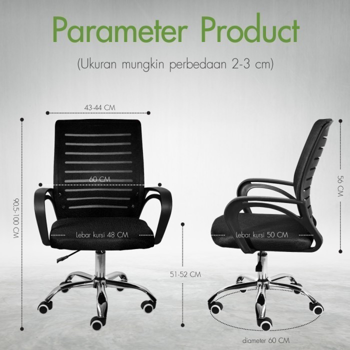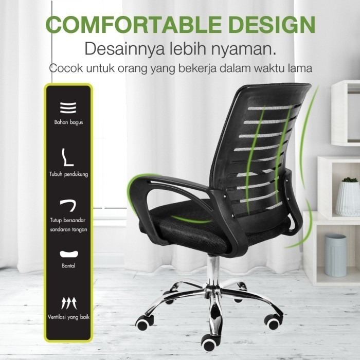 new KURSI KANTOR KURSI KERJA KURSI JARING MODEL B-200 ( GREEN ) STEEL