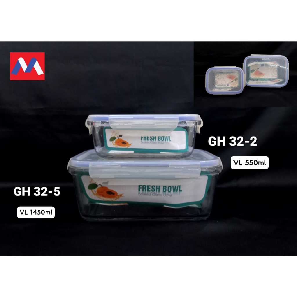 LUNCH BOX KACA TEMPAT MAKAN KACA BOROSILICATE TAHAN PANAS KAPASITAS 1450 ML DAN 550 ML