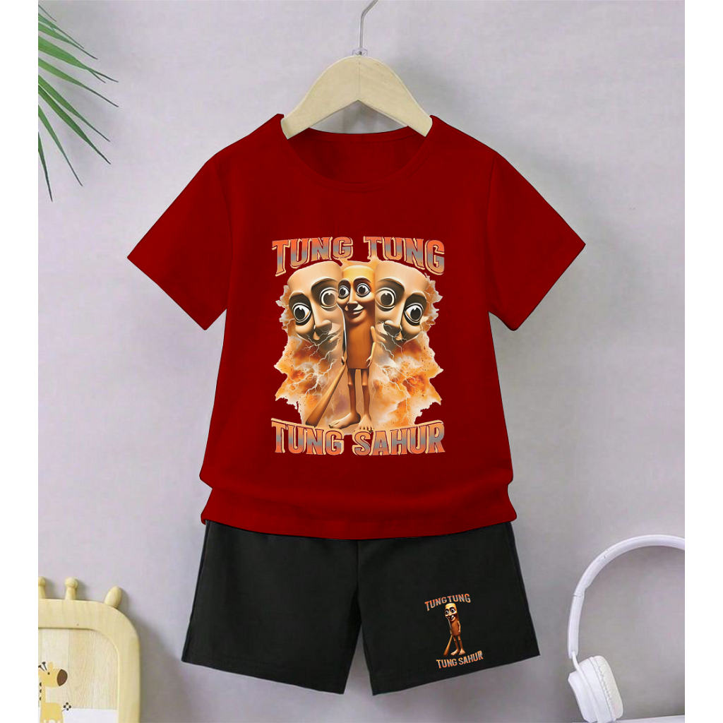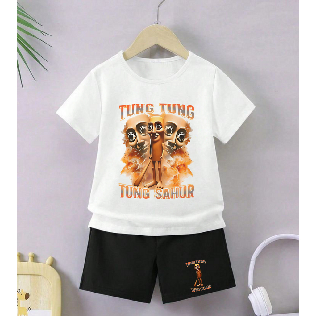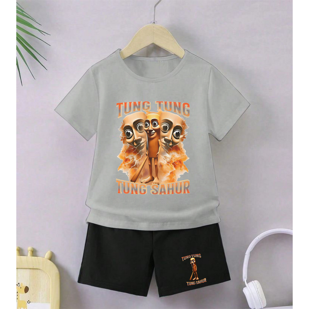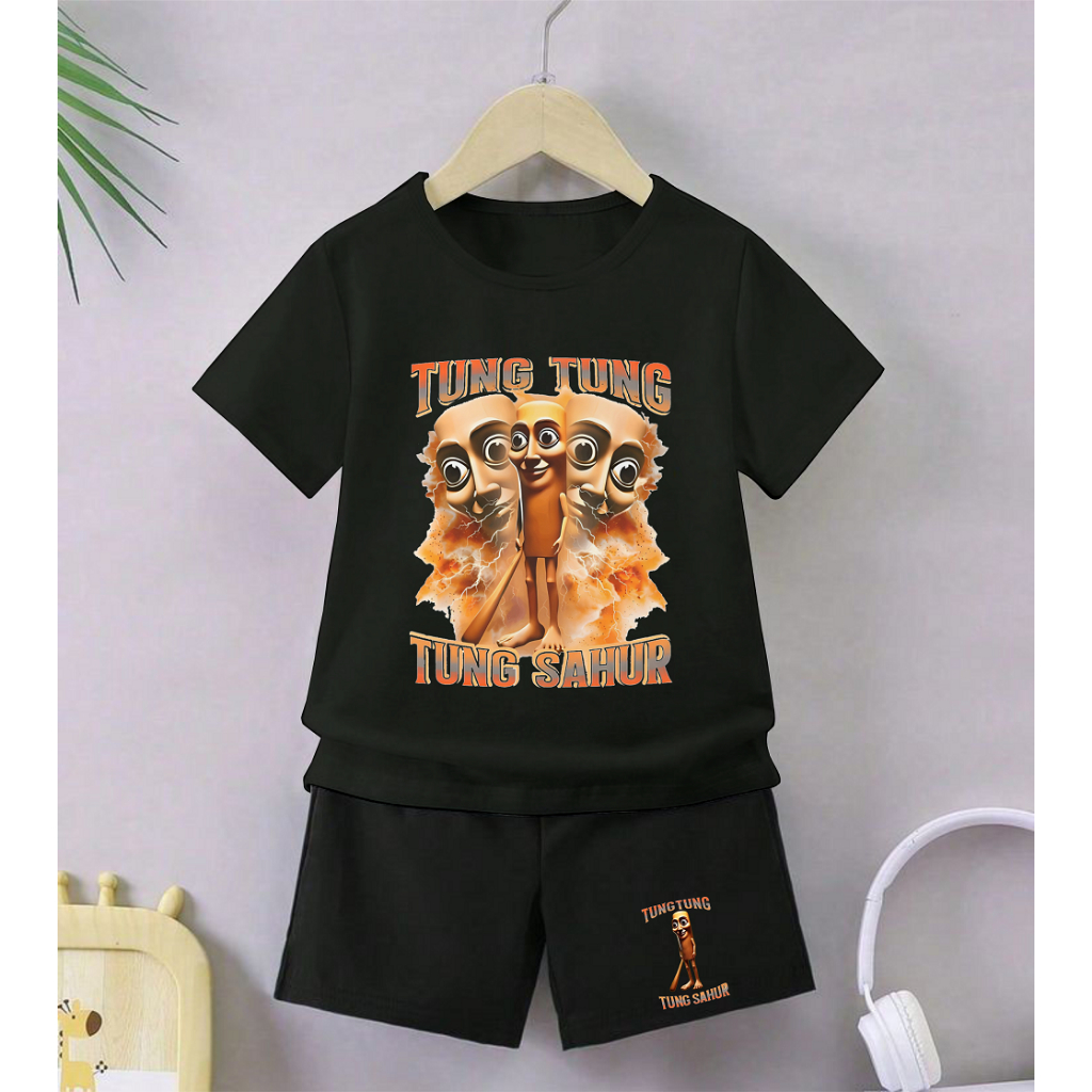 GG Setelan Anak Celana Hitam Cewek Cowok Tema Tung Tung Gambar Anomali Tung Perkuntung