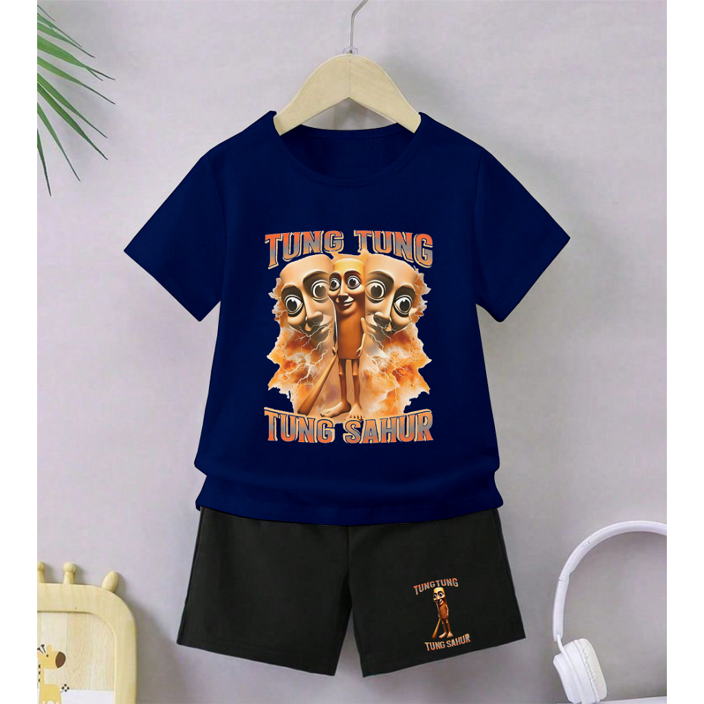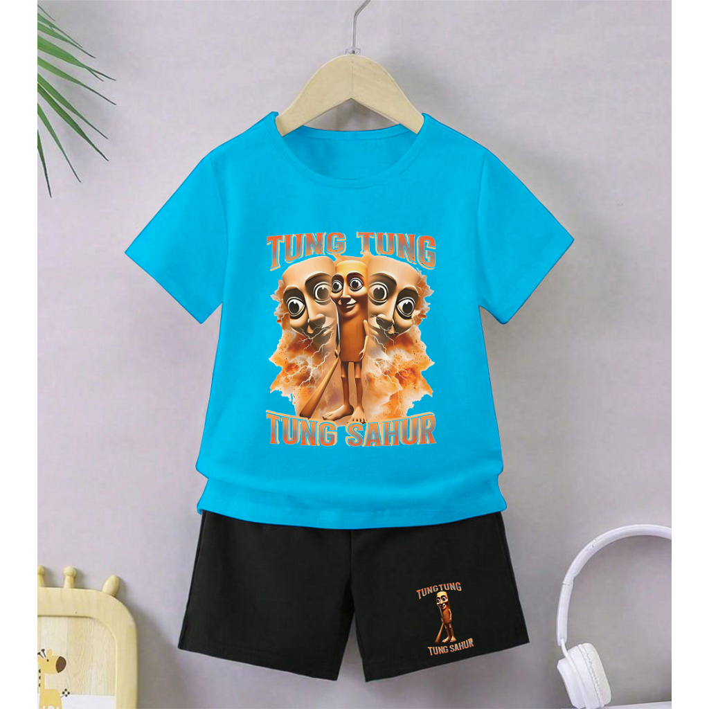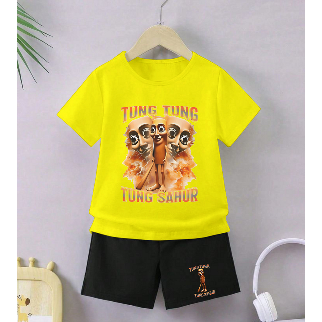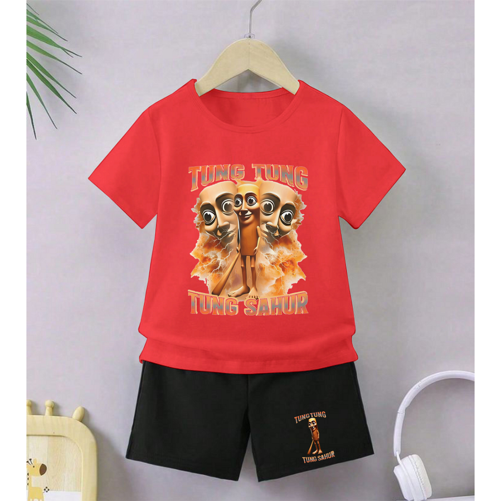 GG Setelan Anak Celana Hitam Cewek Cowok Tema Tung Tung Gambar Anomali Tung Perkuntung