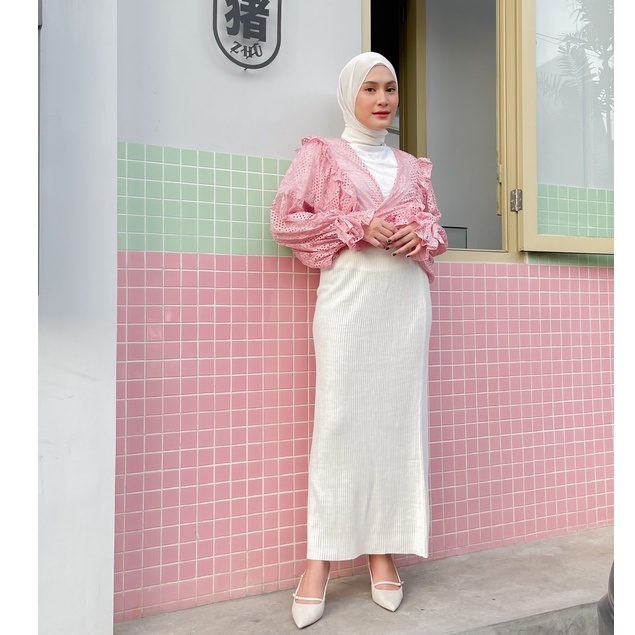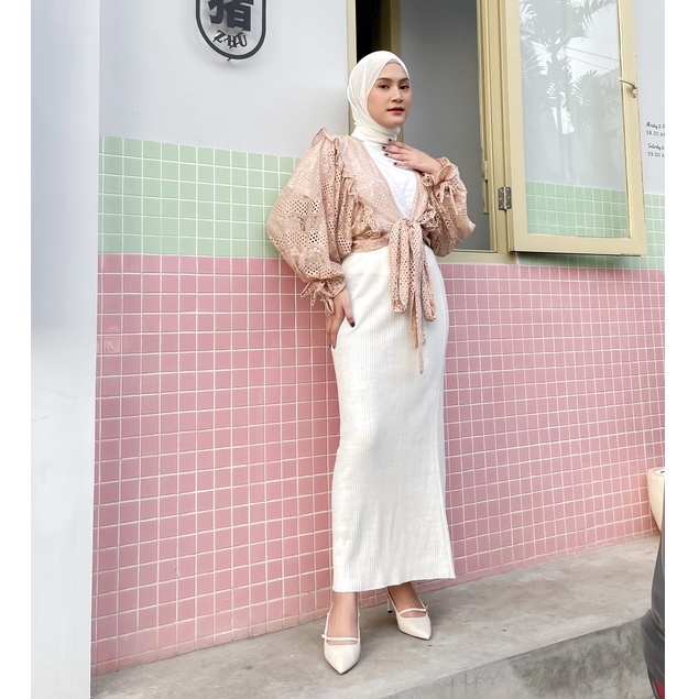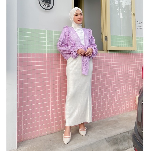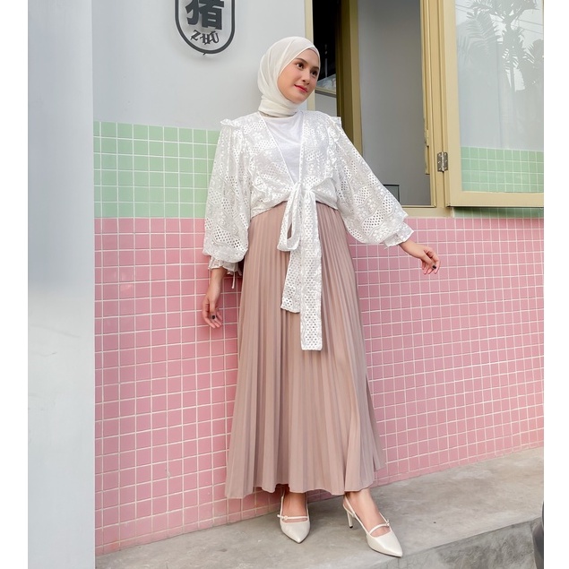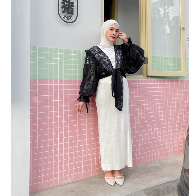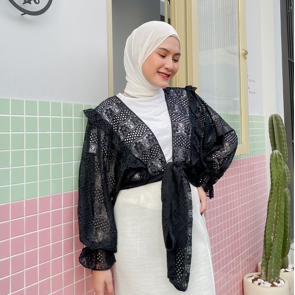 Lace Outer Ruffle Kamera / Outer Brokat Premium / Cardigan Lengan Serut